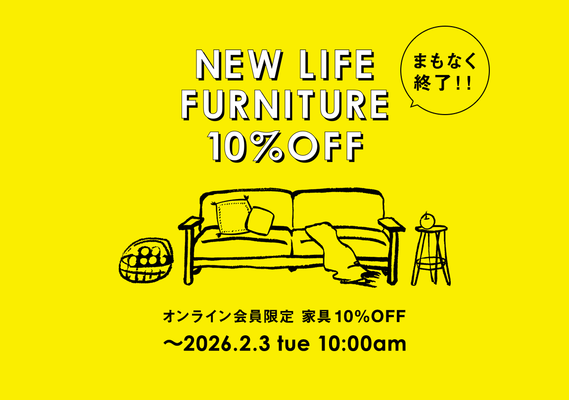 まもなく終了! NEW LIFE FURNITURE 10%OFF