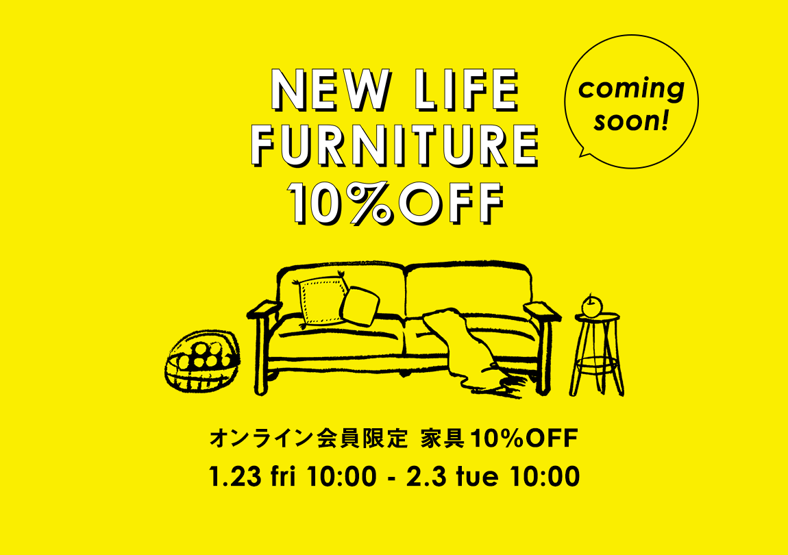会員限定・家具10%OFFのお得なキャンペーンが1月23日(金)10:00よりスタートします!※照明は割引対象外です。