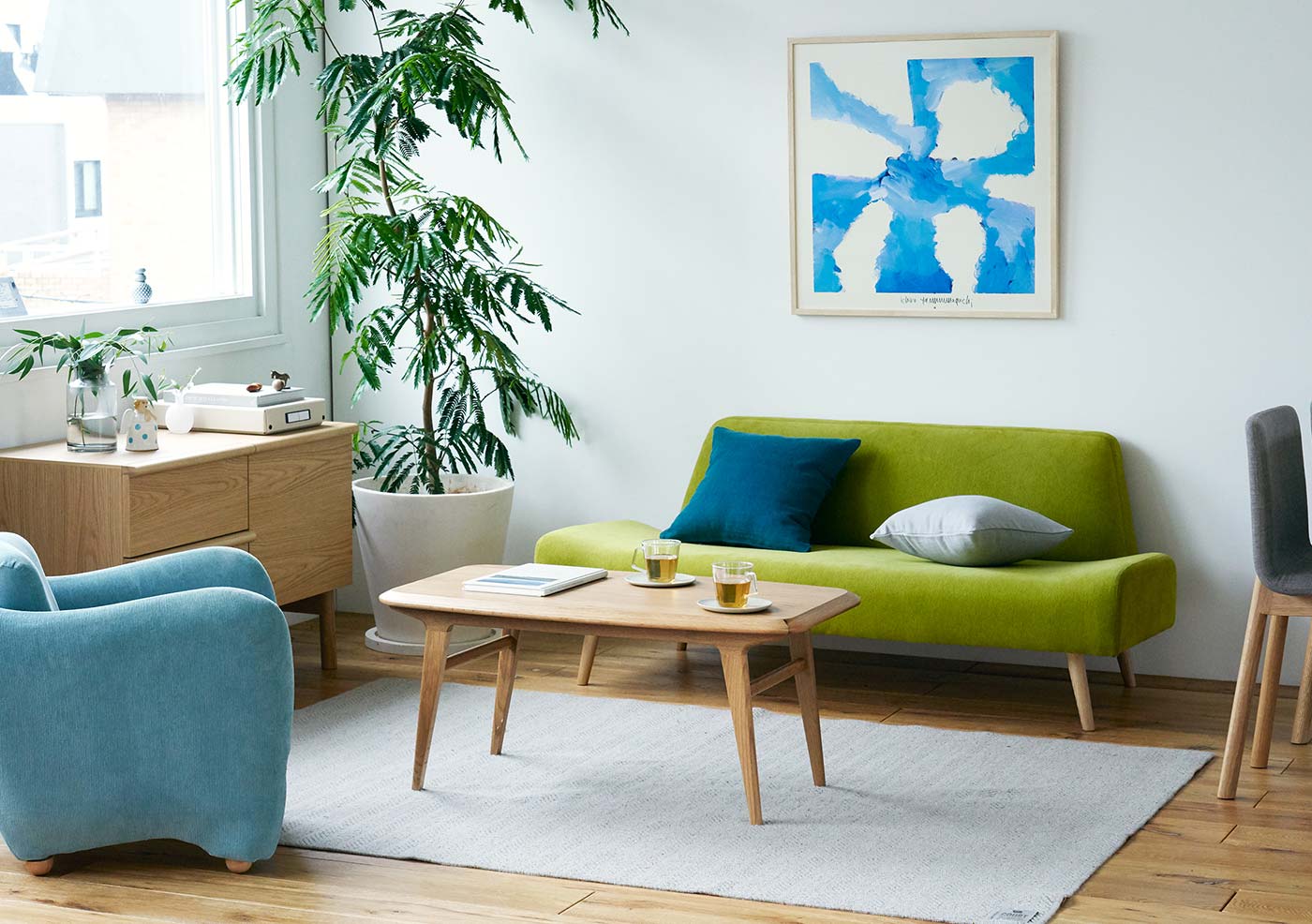 実際に人気の高い組み合わせをもとに、コーディネートのプロがバランスを考えて設計した、はじめての家具選びにも取り入れやすいイデーおすすめのファニチャーセットです。