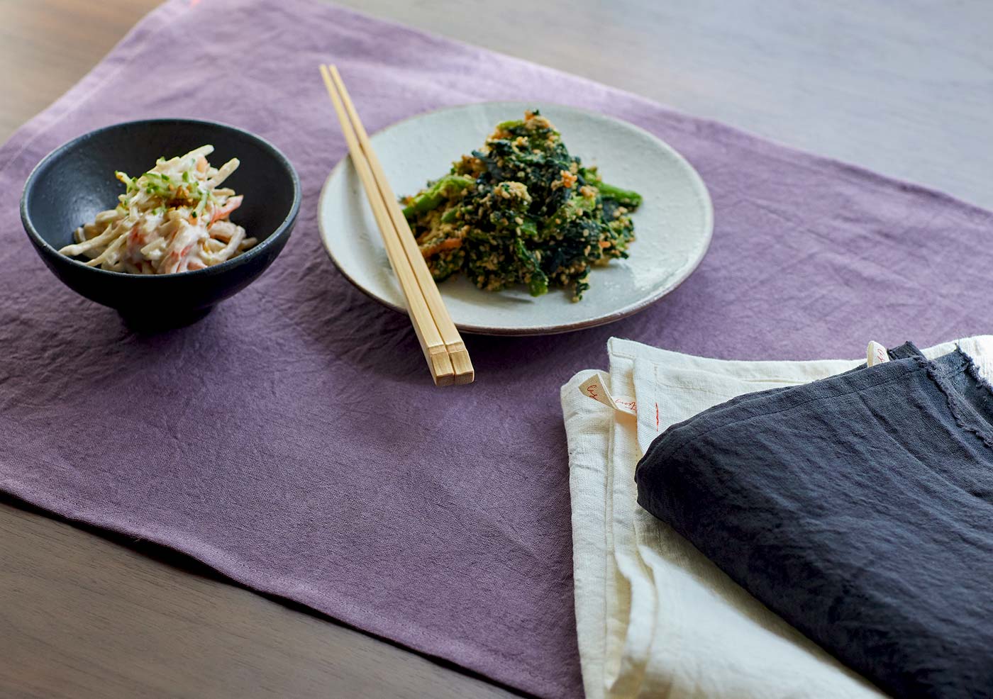 イデーオリジナルのキッチンファブリック à table(ア ターブル)リネンシリーズ。 リネン100%の生地に洗いをかけたやわらかな風合いのシンプルなプレイスマットとキッチンクロスです。 普段は隠れてしまう生地の耳を生かしてさりげないアクセントをつけました。使うほどにリネンらしい風合いが増し、日常にやさしく寄り添います。