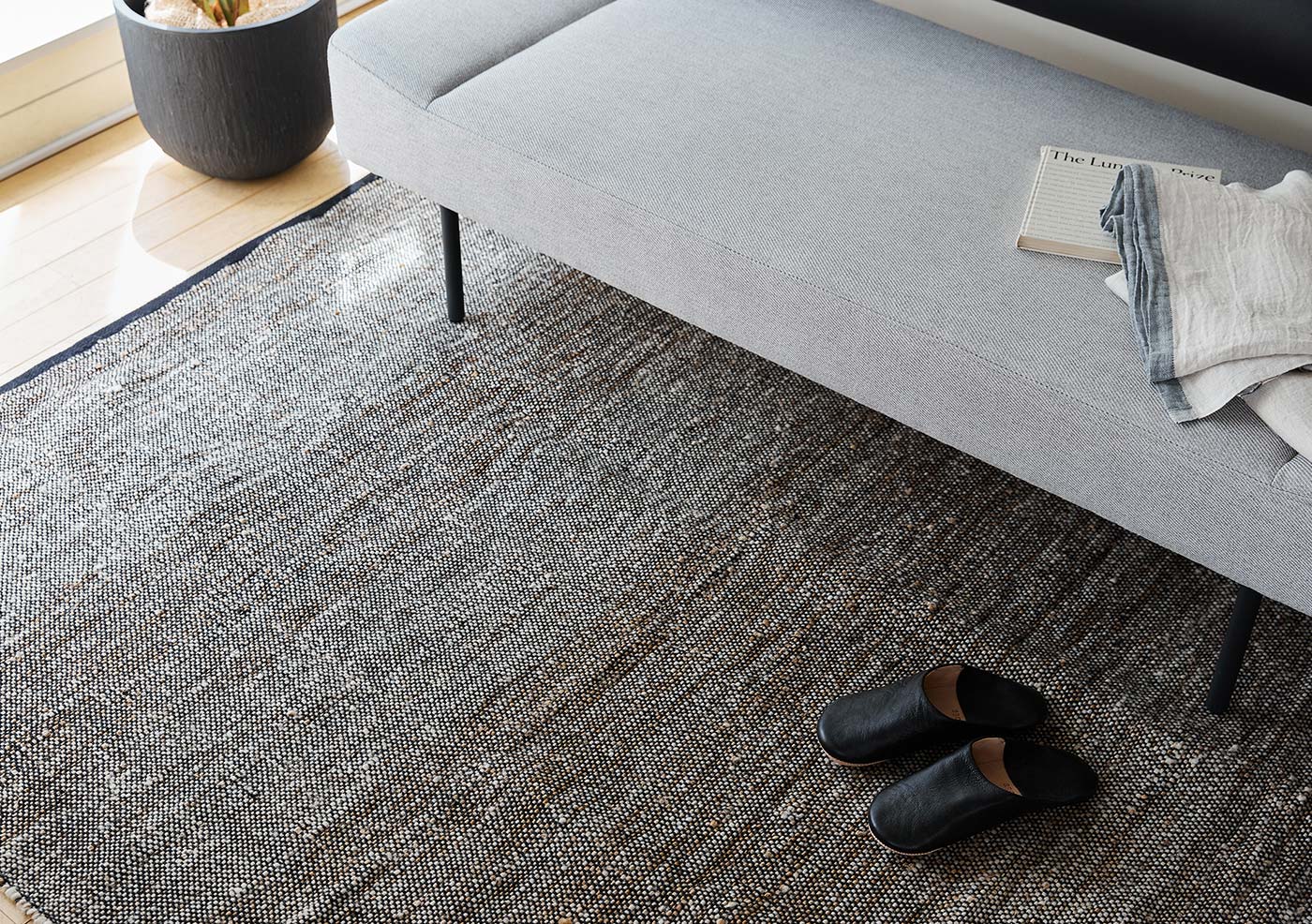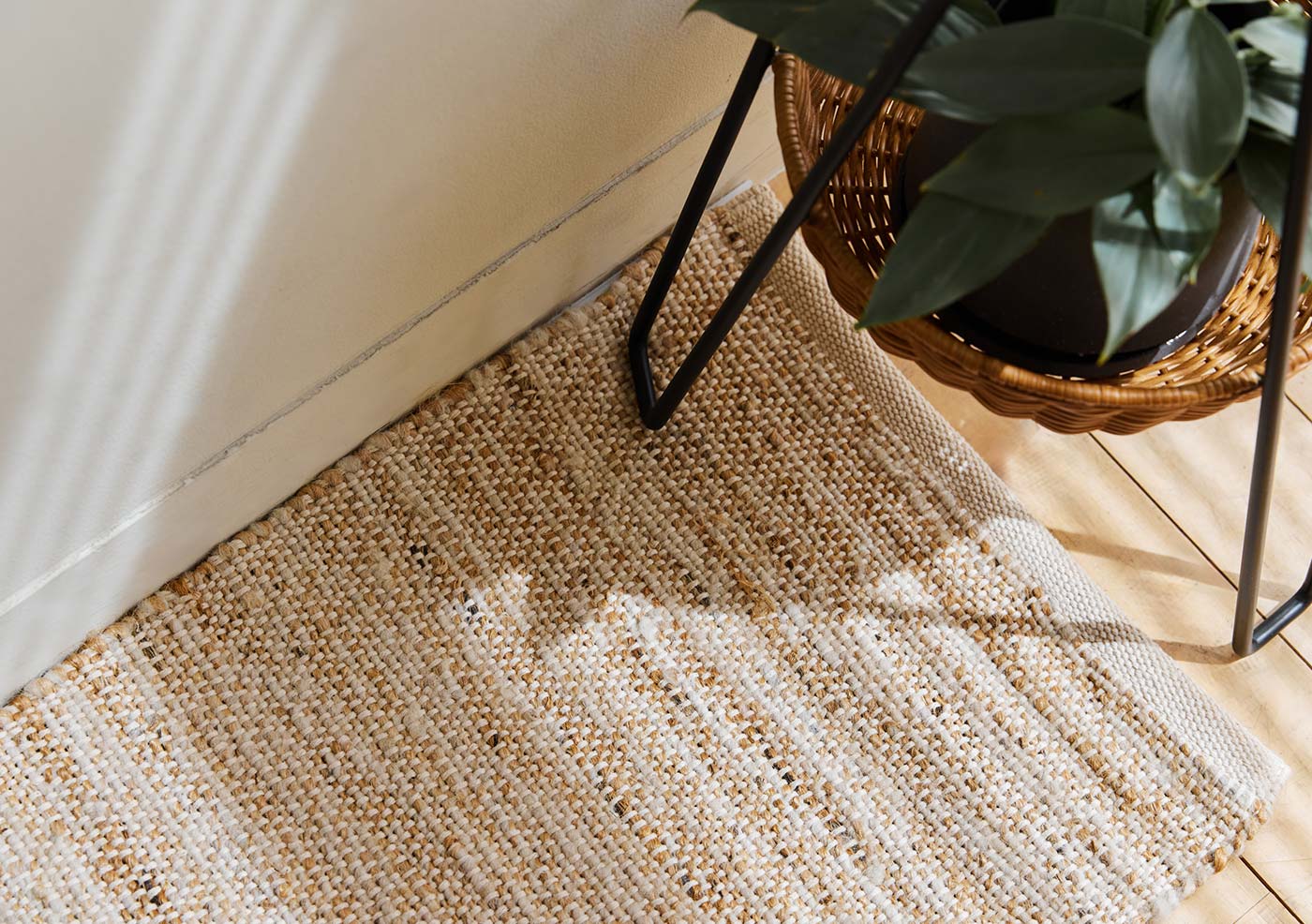 天然素材ジュートのナチュラルな風合いを活かした、表情豊かなイデーのオリジナルラグ。機械織りでありながら、ゆらぎのあるジュートの糸が生み出す独特の風合いが魅力です。 シンプルでモダンなデザイン、合わせやすいホワイトとブラックの2色をご用意しました。