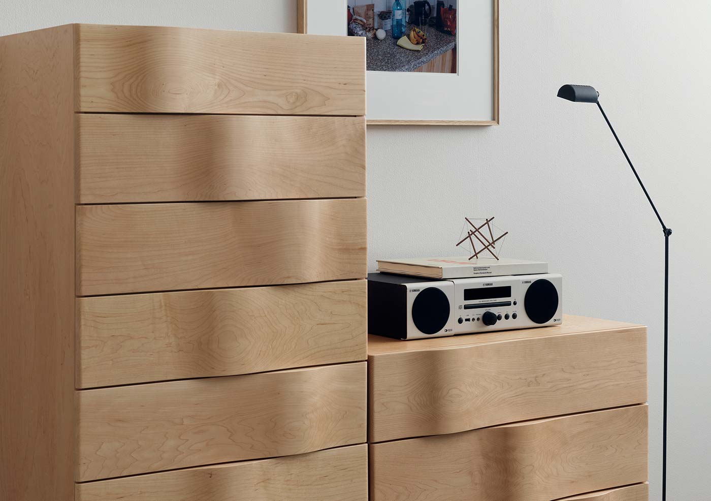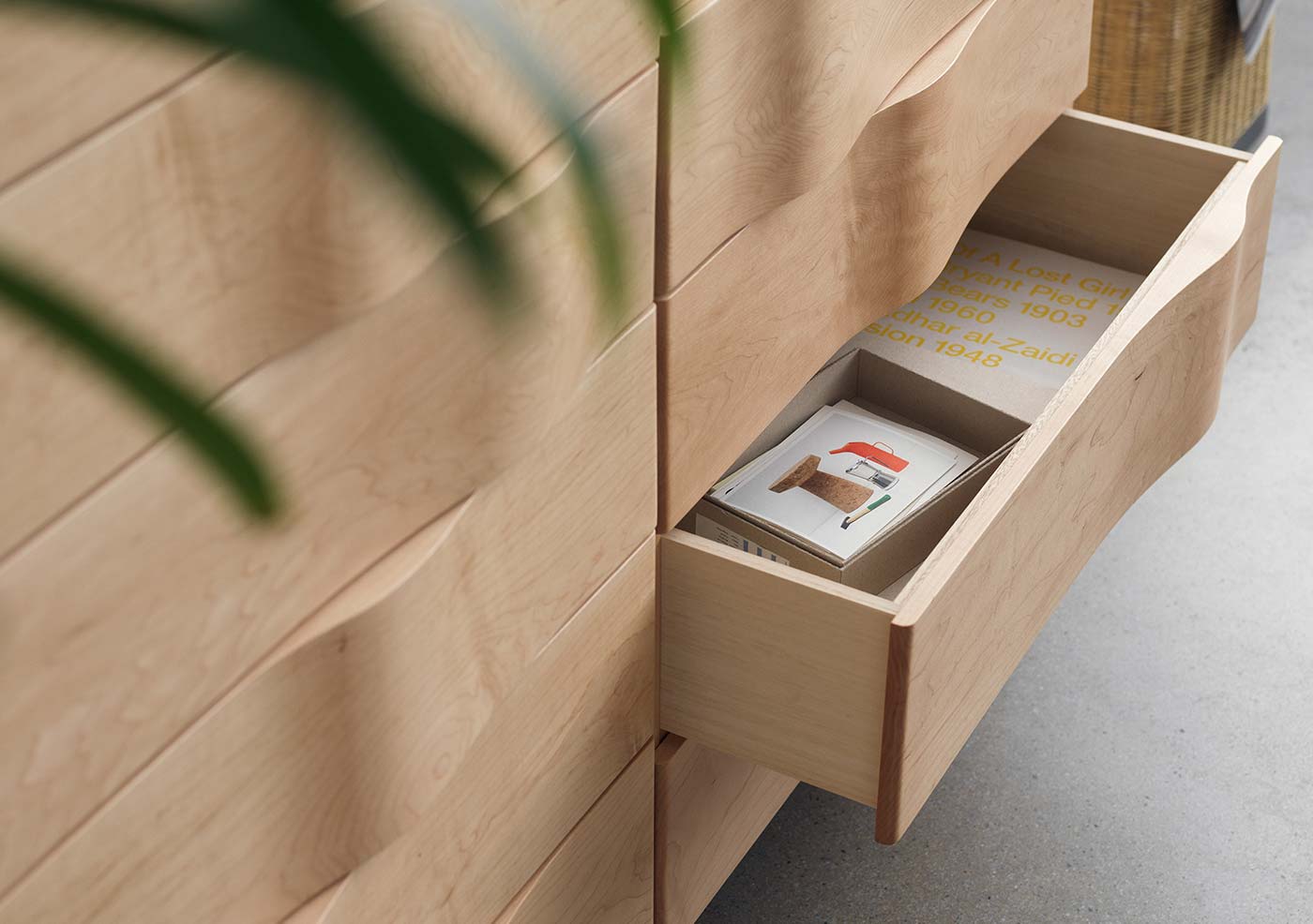 アールデコ以降、1930〜40年代の家具をモチーフに、現代の空間に調和するよう仕上げたチェスト。 無駄のない直線美に、熟練の職人が削り出した引き出し前面の美しいカーブがやわらかな表情を添え、シックさとエレガントさを両立します。メープル材ならではの透明感ある色合いと滑らかな手触りに加え、日常使いに嬉しい高い収納力も魅力です。
