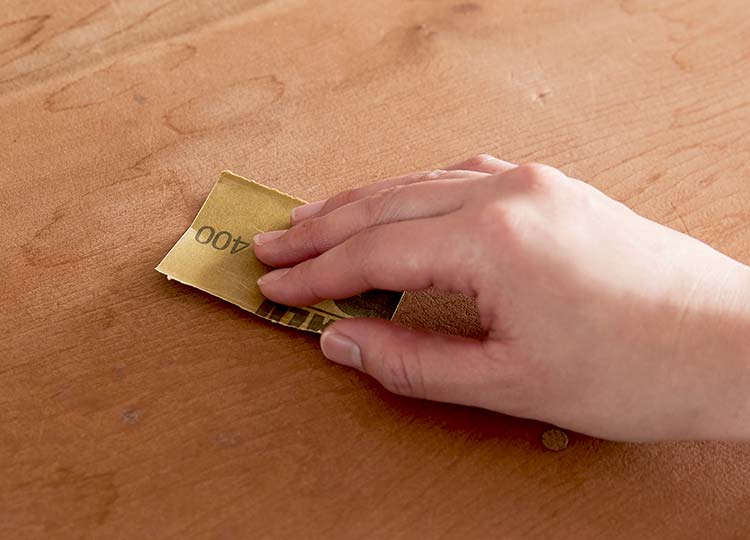 やわらかい布にウッドケア用のポリッシュを少量つけ、木目に沿って表面に薄く擦り込みましょう。