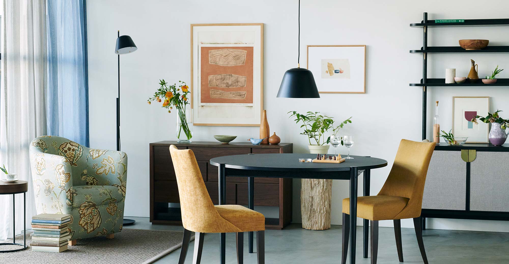 シェードのフォルムの美しさを存分に感じられるペンダントランプは、明かりを灯さない日中も魅力を愉しめます。シェードのカラーがブラックならシックに、ブラス(真鍮)ならエレガントな雰囲気に。