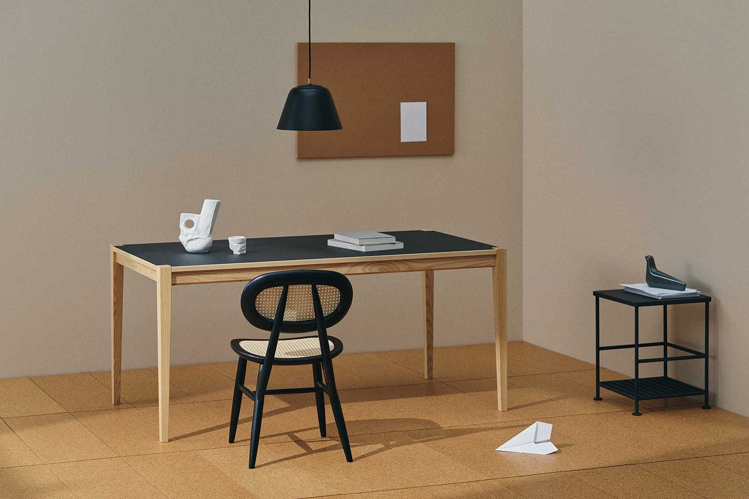NOVA DINING TABLE SQUARE 1600 Natural × Charcoal, CONVENTO CHAIR Black, RIB Square Black, CAMPANA PENDANT LAMP L Black