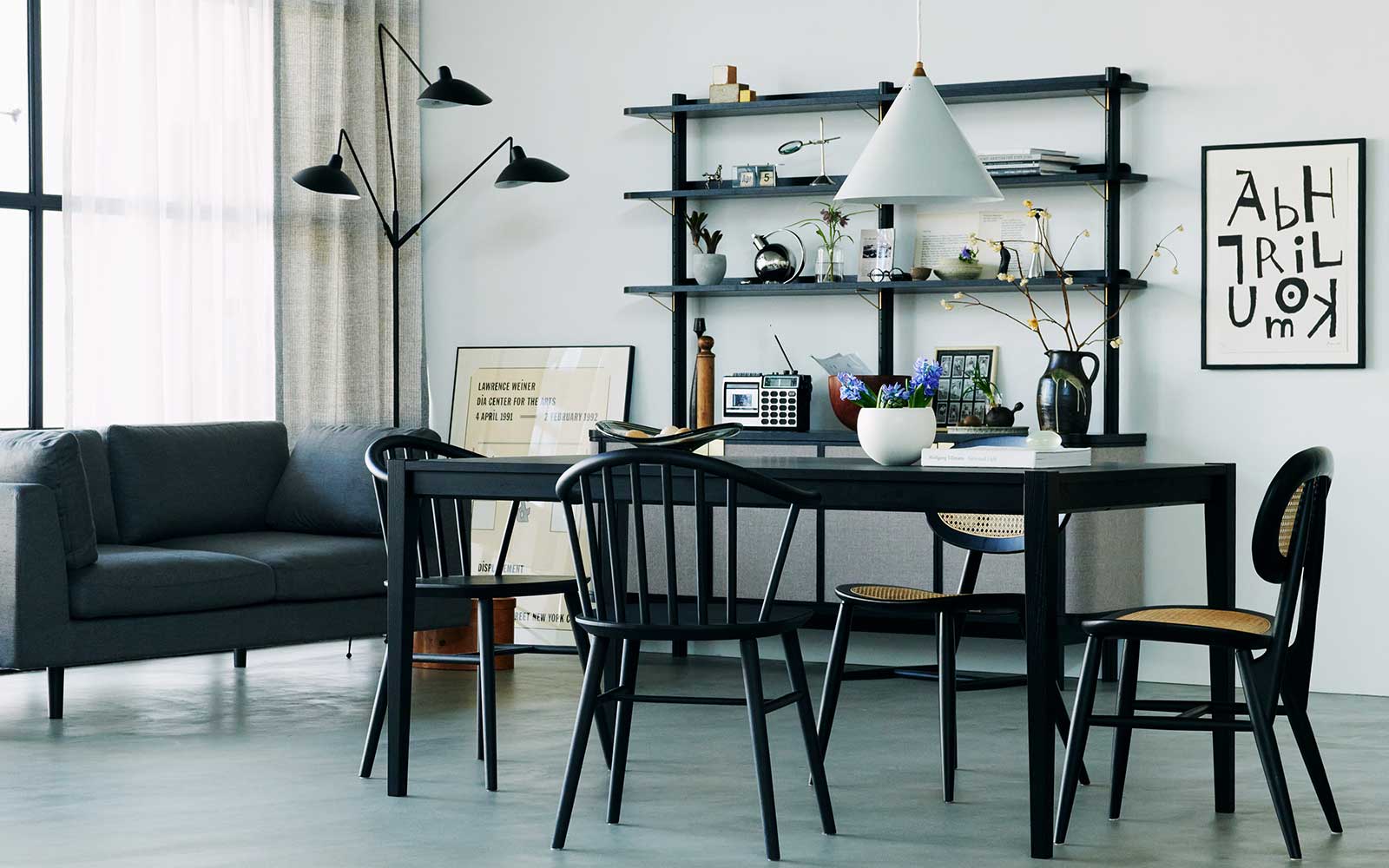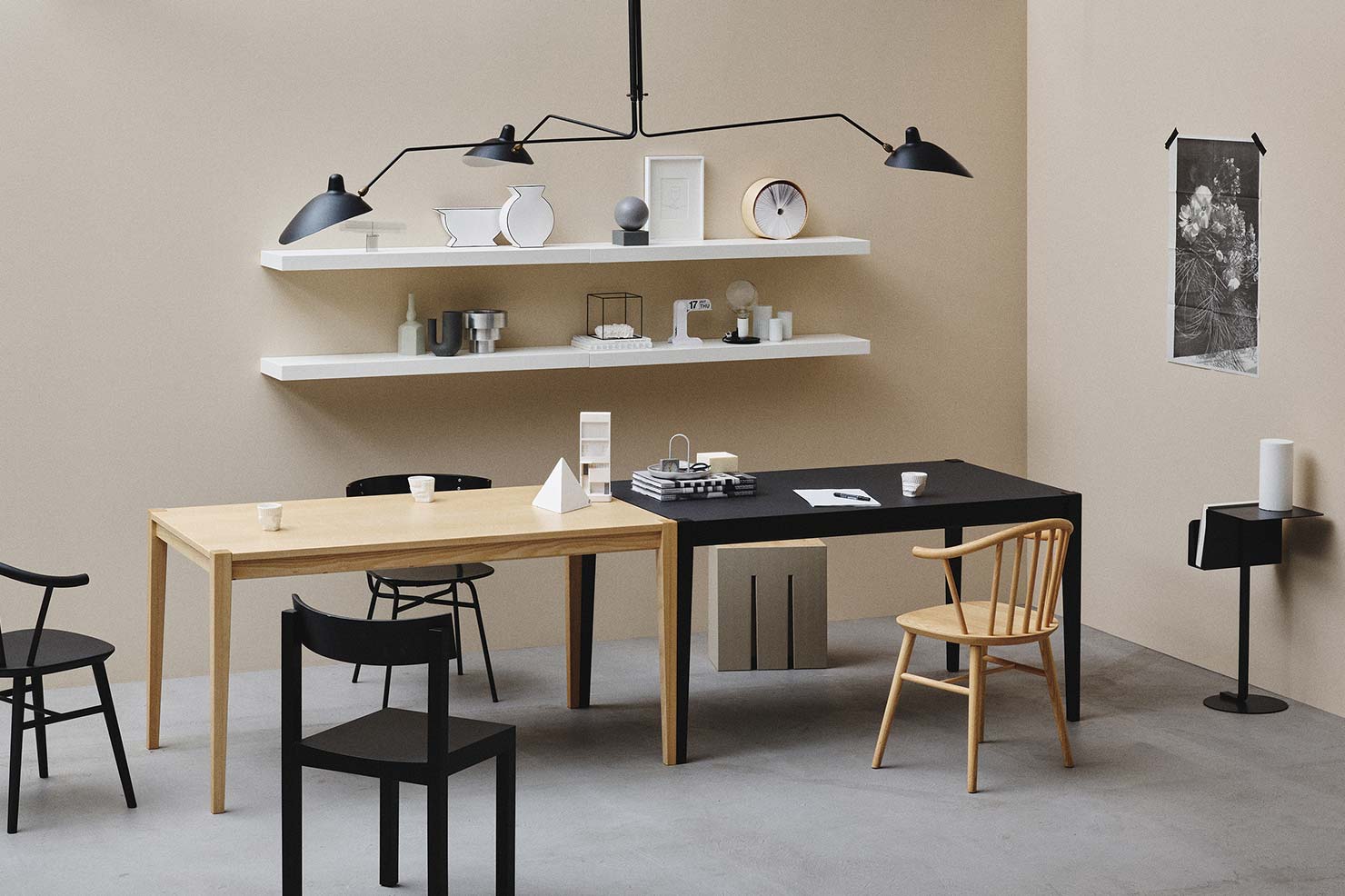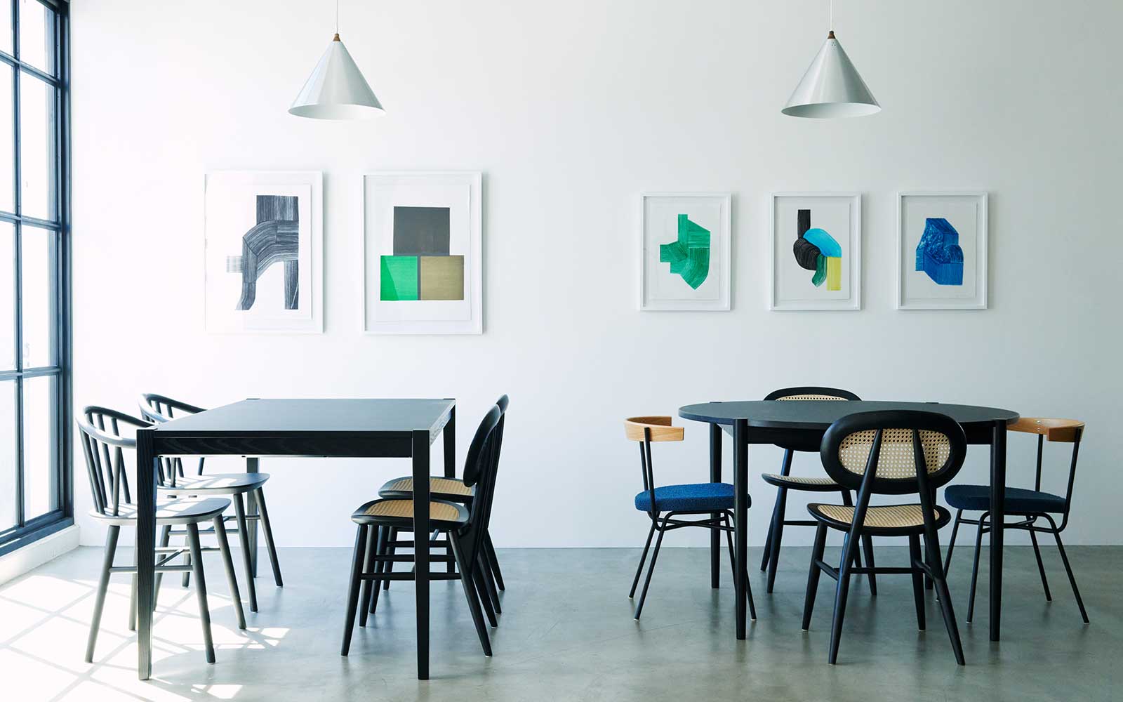 NOVA DINING TABLE SQUARE 1400 Natural × Natural, NOVA DINING TABLE SQUARE 1400 Black × Charcoal, ONDA CHAIR Black, ONDA CHAIR Natural, FERRET CHAIR WOOD SEAT Black, FORM FIND STOOL Slit, MONO TABLE Black, SUSPENSION 3 BRAS PIVOTANTS
