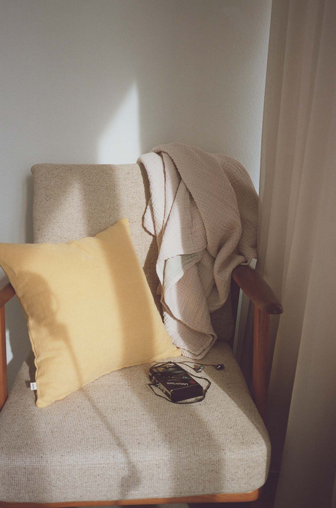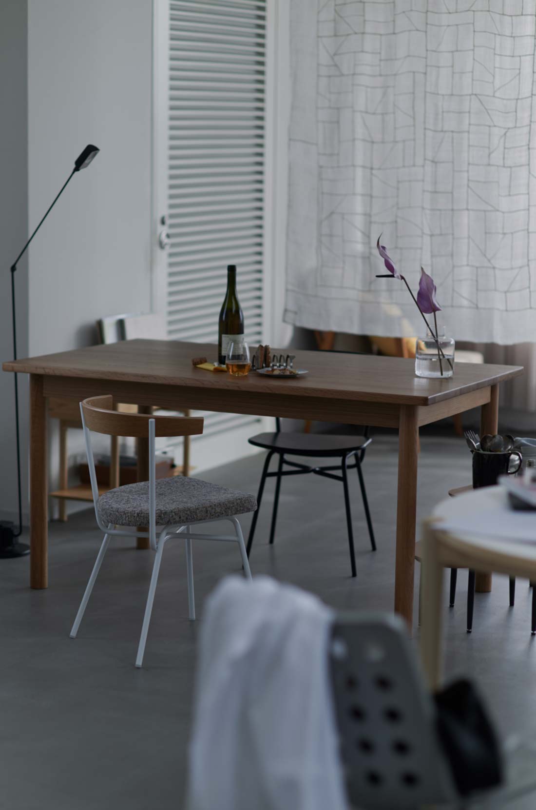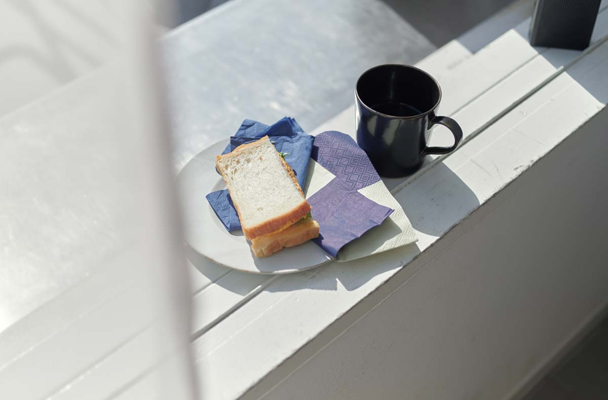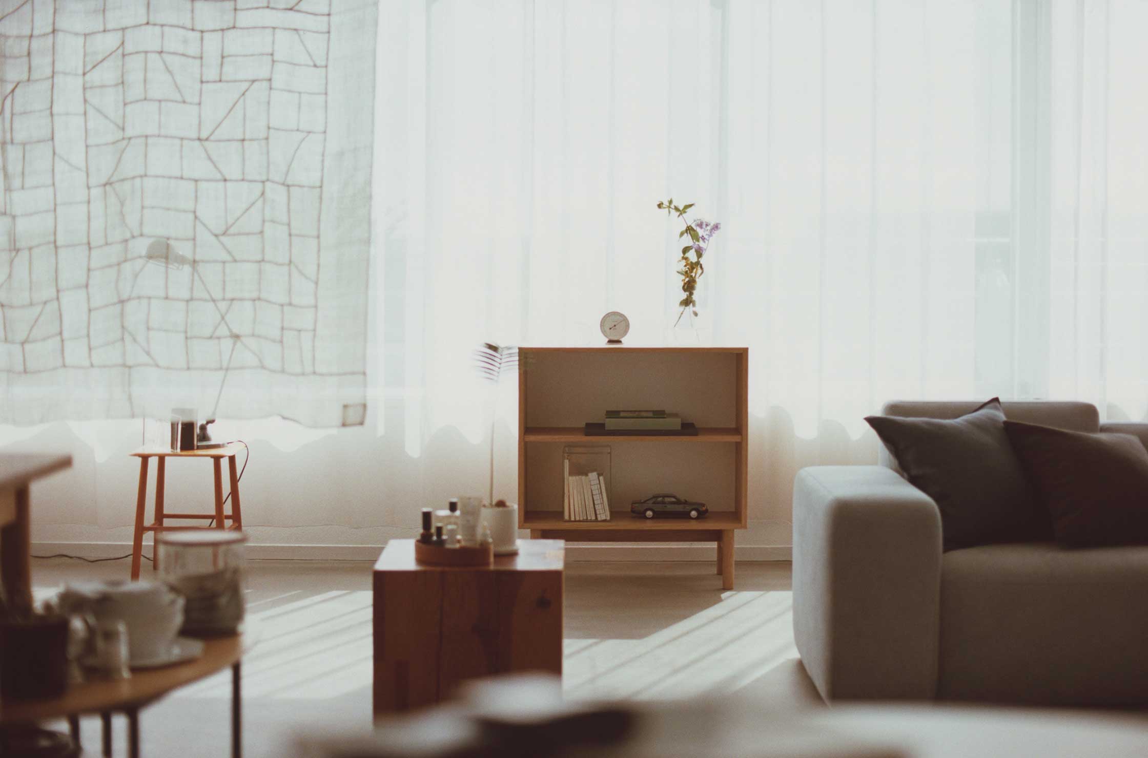 晴れやかな色合いをアクセントに、 リネンやキャンバスが光を受け、窓辺にはやわらかな影が落ちる。