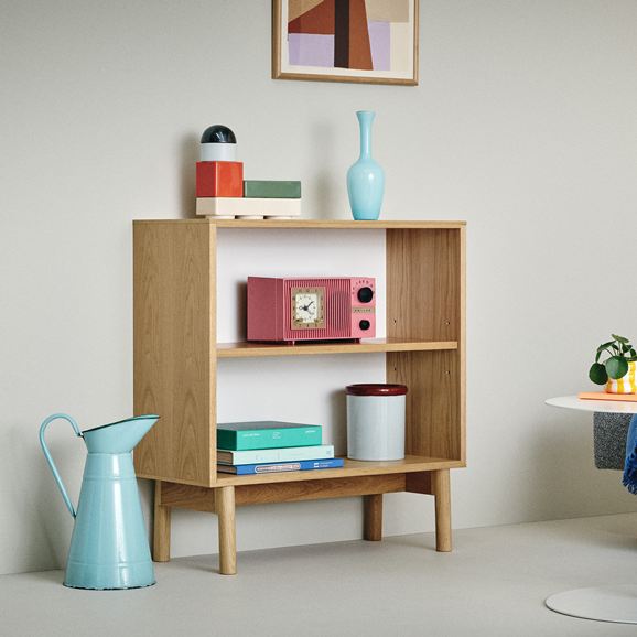 場所を取らず、置く物や使う場所によって棚の高さを変えられるので使いやすいです。背面がホワイトで、収納するもの、飾るものによって、そのもののシルエットやデザインが引き立ちます。