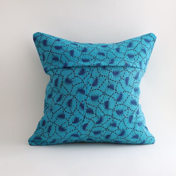 ラリーキルトを使ったクッションカバーです。ラリーキルトは、インド・パキスタンなどの中東アジアで、永い間受け継がれてきた伝統的な布です。古くなったサリーやデュパタ、腰布・古いハギレ等を貼り合わせてパッチワークし、丁寧に刺し子で合わせたもの。インダス河流域の遊牧民の家々では、嫁入り道具として母親から娘へ受け継がれています。気の遠くなるような作業を経て、わが子へ想いをこめて手渡します。一枚一枚に物語があって、何千年にも渡り母から娘へと伝えられる品。布の貼り合わせ方、刺し子の細やかさ、生地の厚みや柄など1つとして同じものはありません。丁寧にハンドメイドで作られているからこその味わいと魅力があります。
