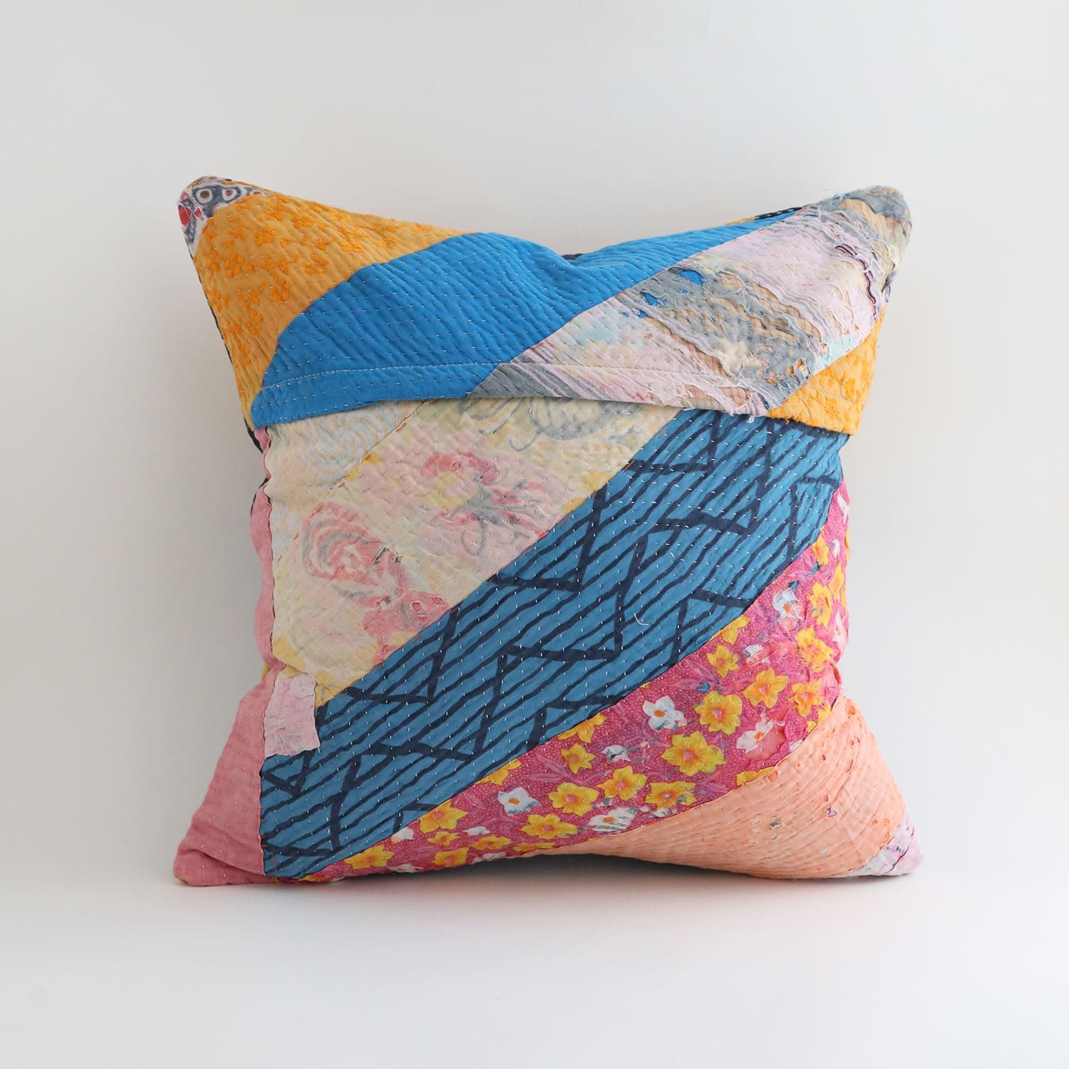 【一点物】ヴィンテージラリーキルト パッチワーク クッションカバー 45cm角