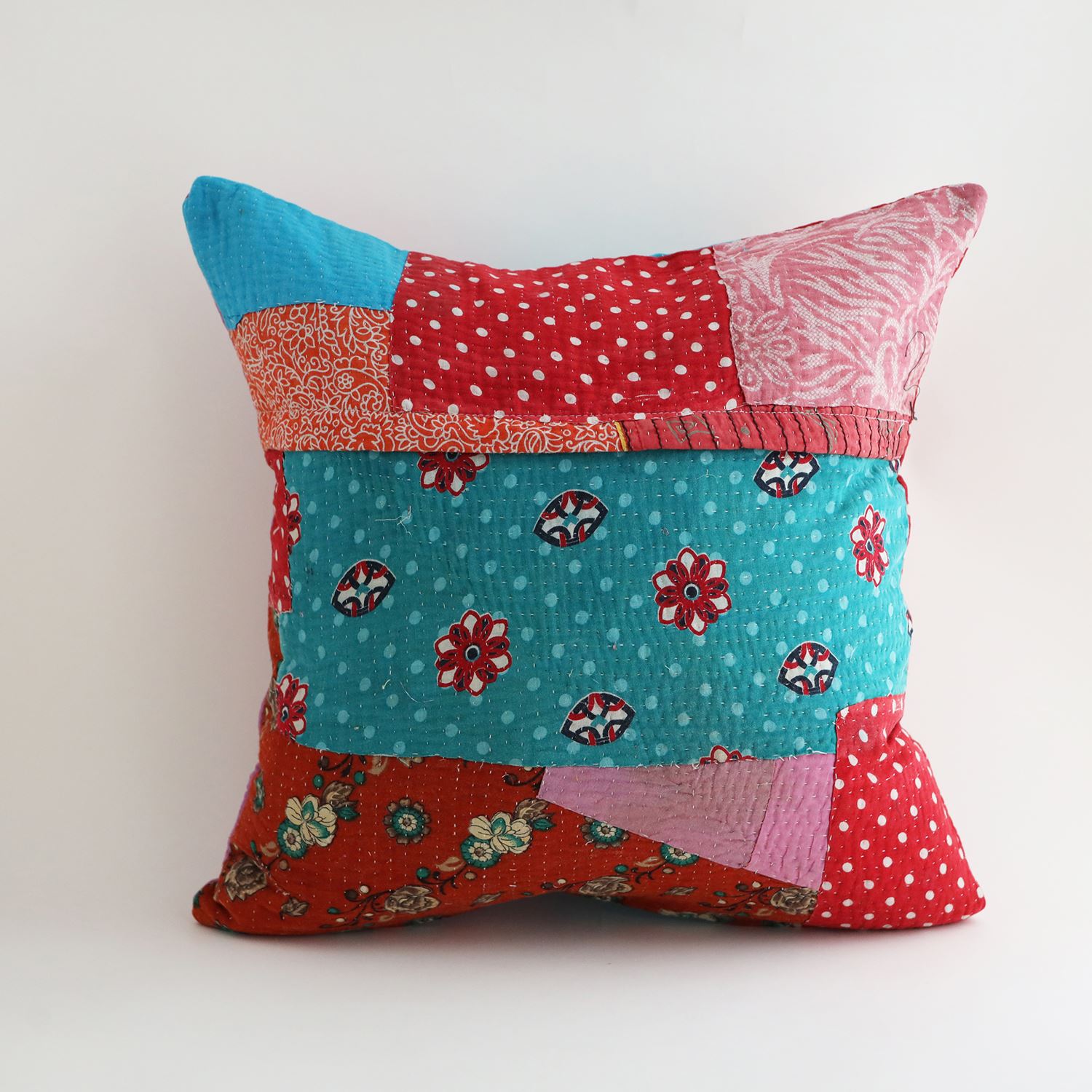 【一点物】ヴィンテージラリーキルト パッチワーク クッションカバー 45cm角