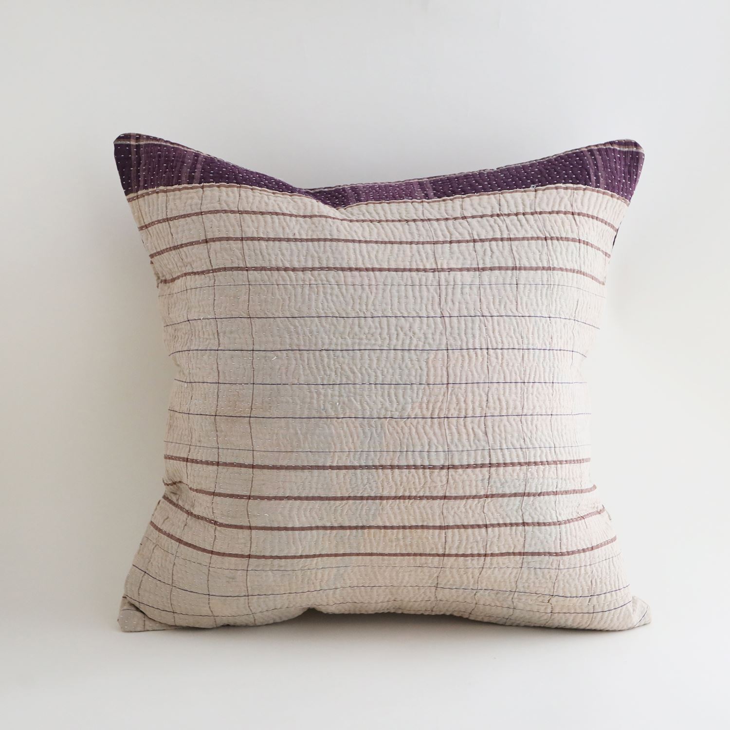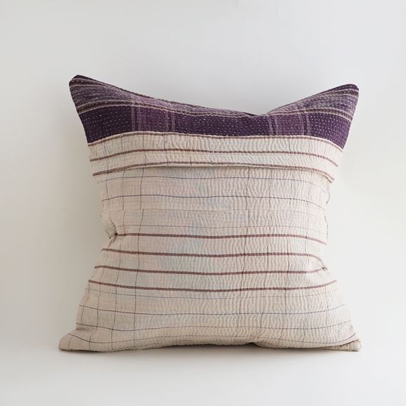 ラリーキルトを使ったクッションカバーです。ラリーキルトは、インド・パキスタンなどの中東アジアで、永い間受け継がれてきた伝統的な布です。古くなったサリーやデュパタ、腰布・古いハギレ等を貼り合わせてパッチワークし、丁寧に刺し子で合わせたもの。インダス河流域の遊牧民の家々では、嫁入り道具として母親から娘へ受け継がれています。気の遠くなるような作業を経て、わが子へ想いをこめて手渡します。一枚一枚に物語があって、何千年にも渡り母から娘へと伝えられる品。布の貼り合わせ方、刺し子の細やかさ、生地の厚みや柄など1つとして同じものはありません。丁寧にハンドメイドで作られているからこその味わいと魅力があります。