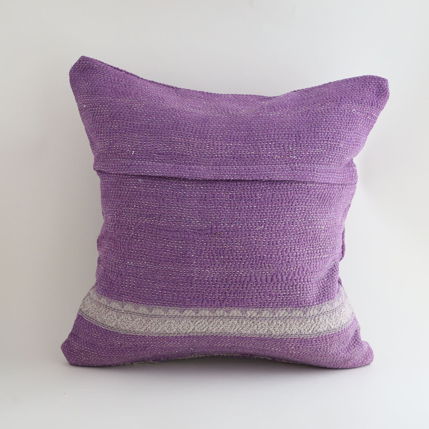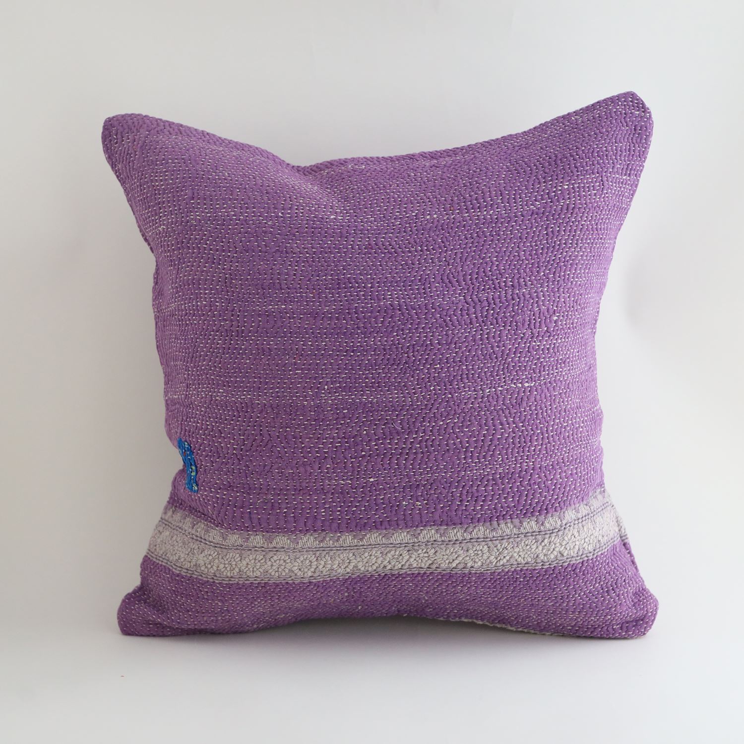 ラリーキルトを使ったクッションカバーです。ラリーキルトは、インド・パキスタンなどの中東アジアで、永い間受け継がれてきた伝統的な布です。古くなったサリーやデュパタ、腰布・古いハギレ等を貼り合わせてパッチワークし、丁寧に刺し子で合わせたもの。インダス河流域の遊牧民の家々では、嫁入り道具として母親から娘へ受け継がれています。気の遠くなるような作業を経て、わが子へ想いをこめて手渡します。一枚一枚に物語があって、何千年にも渡り母から娘へと伝えられる品。布の貼り合わせ方、刺し子の細やかさ、生地の厚みや柄など1つとして同じものはありません。丁寧にハンドメイドで作られているからこその味わいと魅力があります。