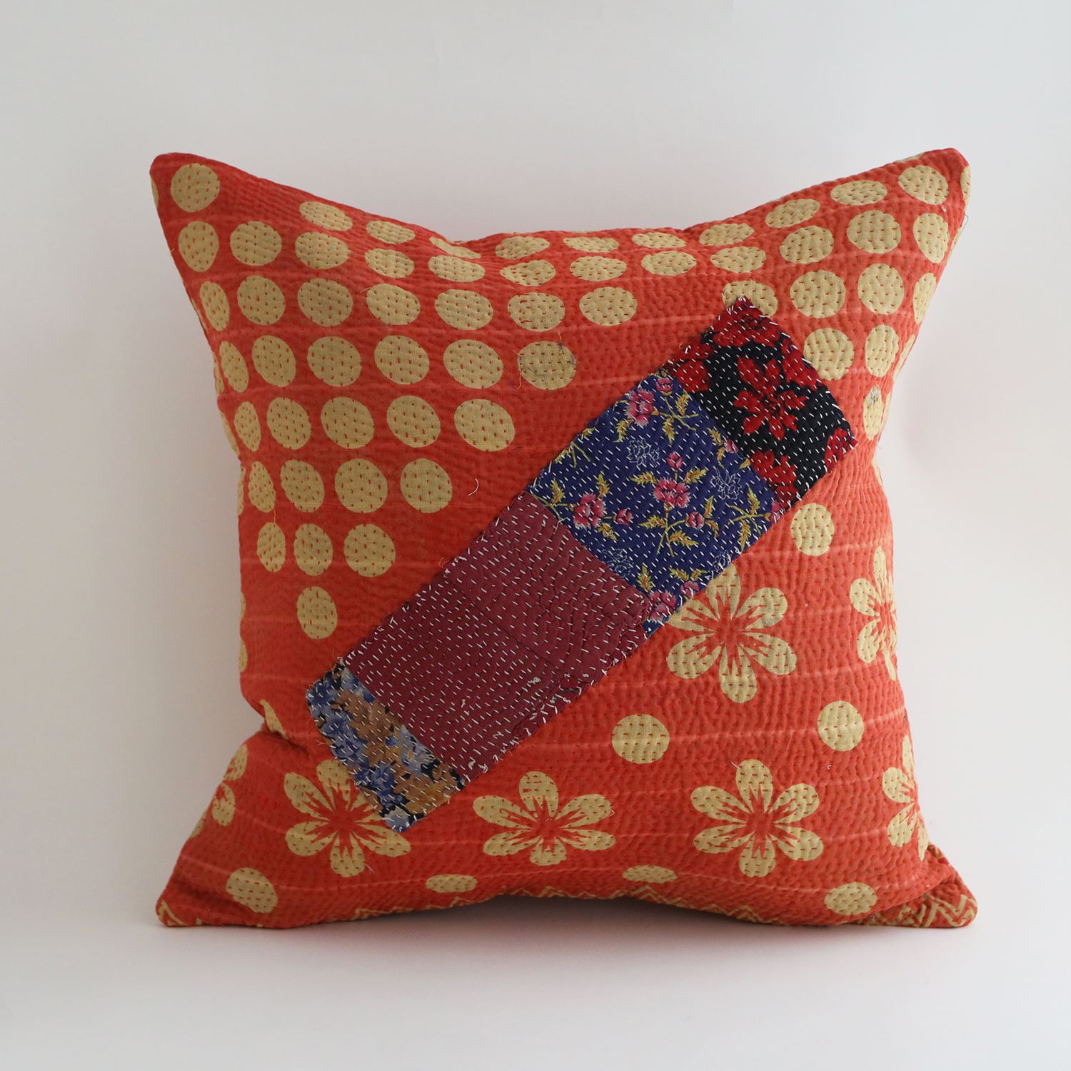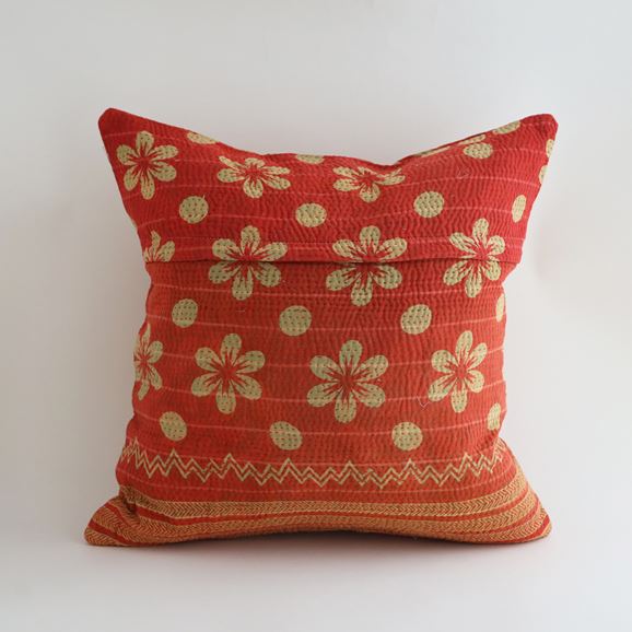 ラリーキルトを使ったクッションカバーです。ラリーキルトは、インド・パキスタンなどの中東アジアで、永い間受け継がれてきた伝統的な布です。古くなったサリーやデュパタ、腰布・古いハギレ等を貼り合わせてパッチワークし、丁寧に刺し子で合わせたもの。インダス河流域の遊牧民の家々では、嫁入り道具として母親から娘へ受け継がれています。気の遠くなるような作業を経て、わが子へ想いをこめて手渡します。一枚一枚に物語があって、何千年にも渡り母から娘へと伝えられる品。布の貼り合わせ方、刺し子の細やかさ、生地の厚みや柄など1つとして同じものはありません。丁寧にハンドメイドで作られているからこその味わいと魅力があります。