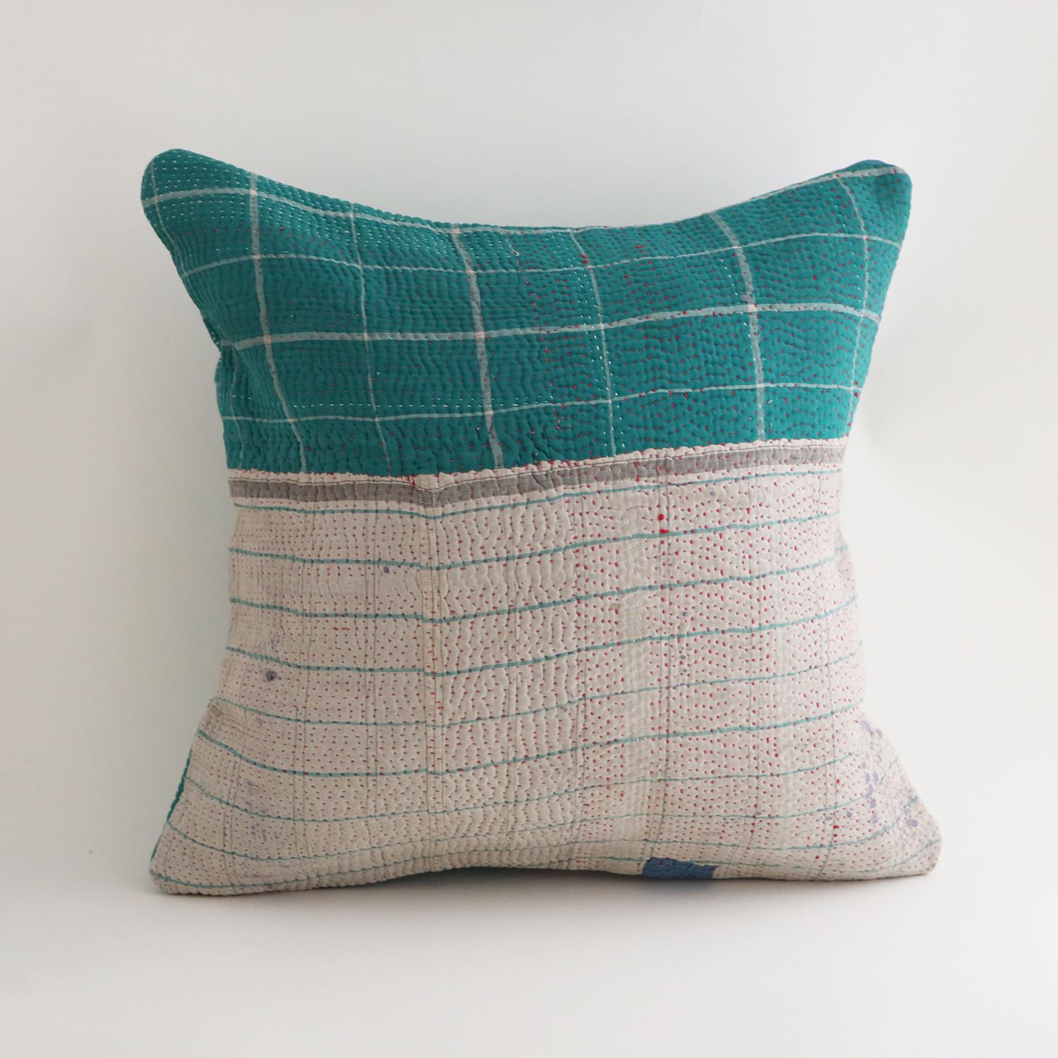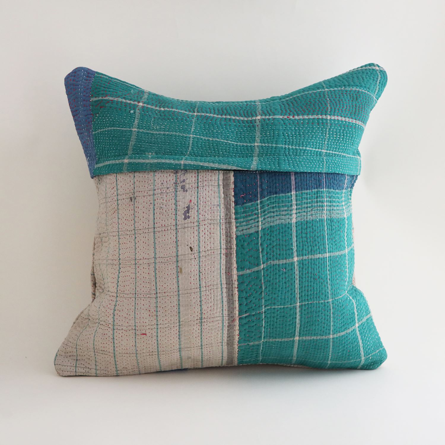 ラリーキルトを使ったクッションカバーです。ラリーキルトは、インド・パキスタンなどの中東アジアで、永い間受け継がれてきた伝統的な布です。古くなったサリーやデュパタ、腰布・古いハギレ等を貼り合わせてパッチワークし、丁寧に刺し子で合わせたもの。インダス河流域の遊牧民の家々では、嫁入り道具として母親から娘へ受け継がれています。気の遠くなるような作業を経て、わが子へ想いをこめて手渡します。一枚一枚に物語があって、何千年にも渡り母から娘へと伝えられる品。布の貼り合わせ方、刺し子の細やかさ、生地の厚みや柄など1つとして同じものはありません。丁寧にハンドメイドで作られているからこその味わいと魅力があります。