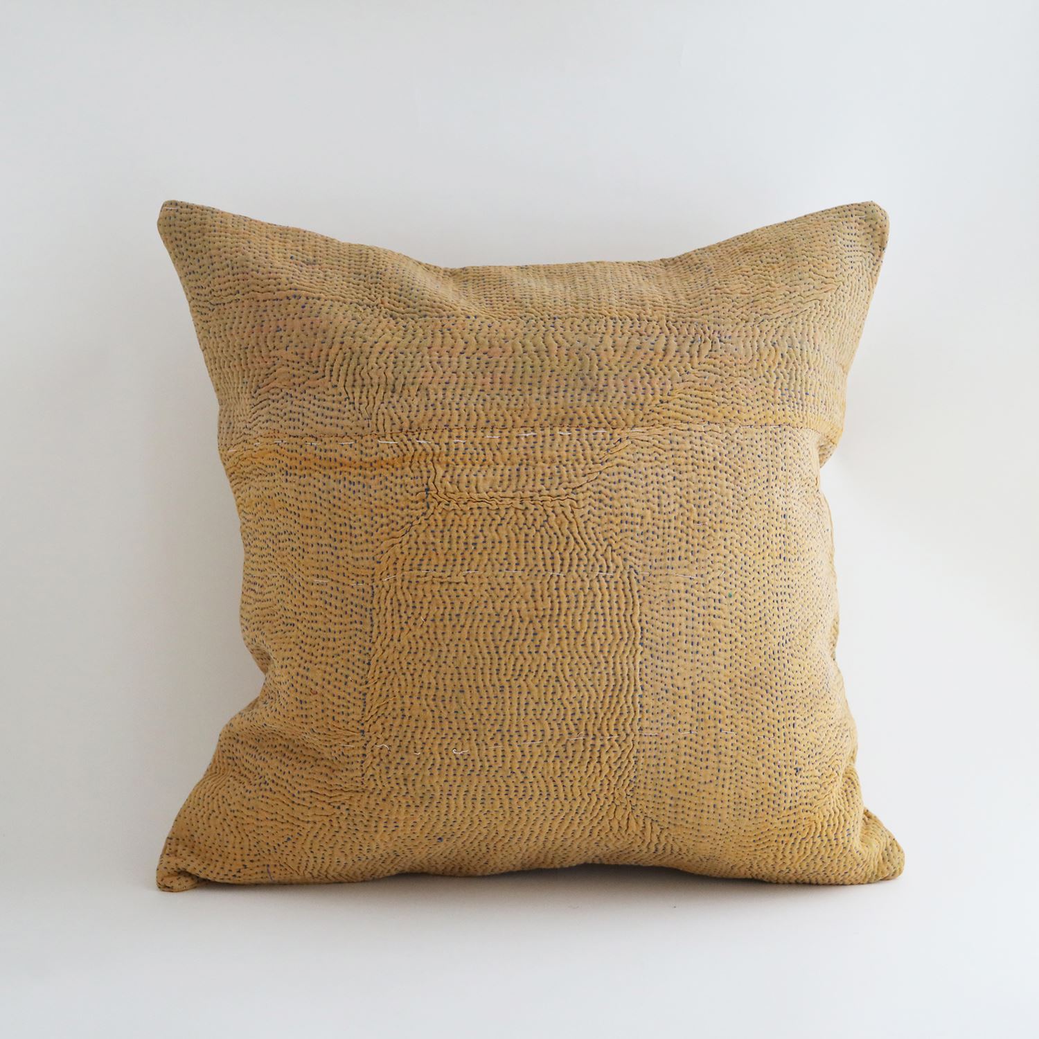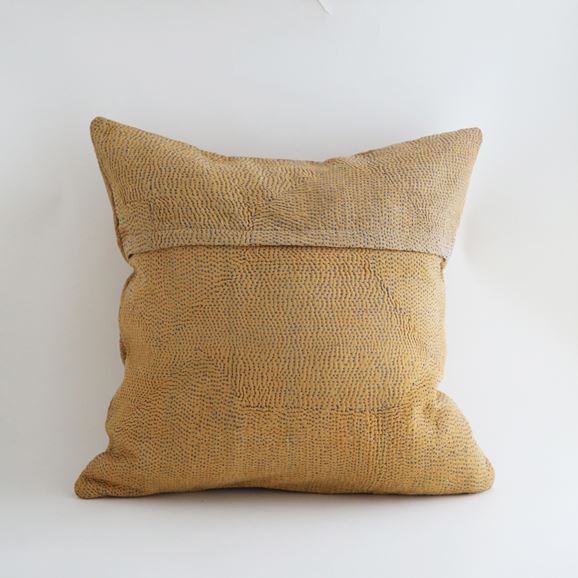 ラリーキルトを使ったクッションカバーです。ラリーキルトは、インド・パキスタンなどの中東アジアで、永い間受け継がれてきた伝統的な布です。古くなったサリーやデュパタ、腰布・古いハギレ等を貼り合わせてパッチワークし、丁寧に刺し子で合わせたもの。インダス河流域の遊牧民の家々では、嫁入り道具として母親から娘へ受け継がれています。気の遠くなるような作業を経て、わが子へ想いをこめて手渡します。一枚一枚に物語があって、何千年にも渡り母から娘へと伝えられる品。布の貼り合わせ方、刺し子の細やかさ、生地の厚みや柄など1つとして同じものはありません。丁寧にハンドメイドで作られているからこその味わいと魅力があります。