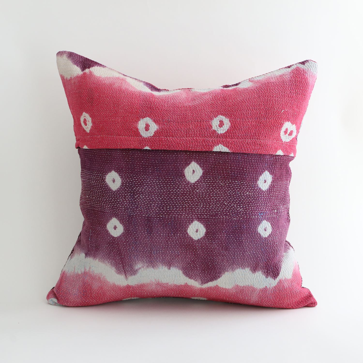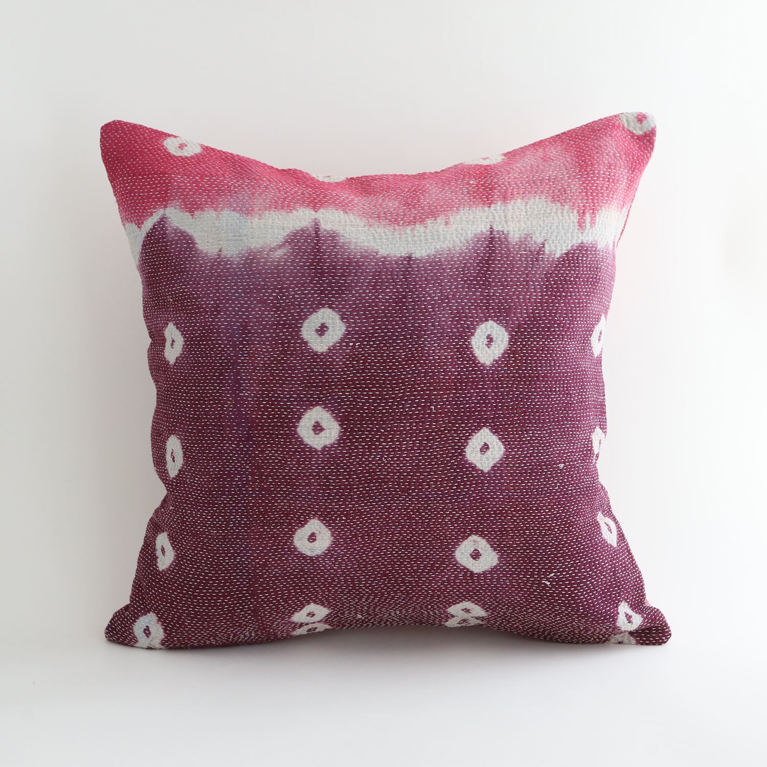 ラリーキルトを使ったクッションカバーです。ラリーキルトは、インド・パキスタンなどの中東アジアで、永い間受け継がれてきた伝統的な布です。古くなったサリーやデュパタ、腰布・古いハギレ等を貼り合わせてパッチワークし、丁寧に刺し子で合わせたもの。インダス河流域の遊牧民の家々では、嫁入り道具として母親から娘へ受け継がれています。気の遠くなるような作業を経て、わが子へ想いをこめて手渡します。一枚一枚に物語があって、何千年にも渡り母から娘へと伝えられる品。布の貼り合わせ方、刺し子の細やかさ、生地の厚みや柄など1つとして同じものはありません。丁寧にハンドメイドで作られているからこその味わいと魅力があります。
