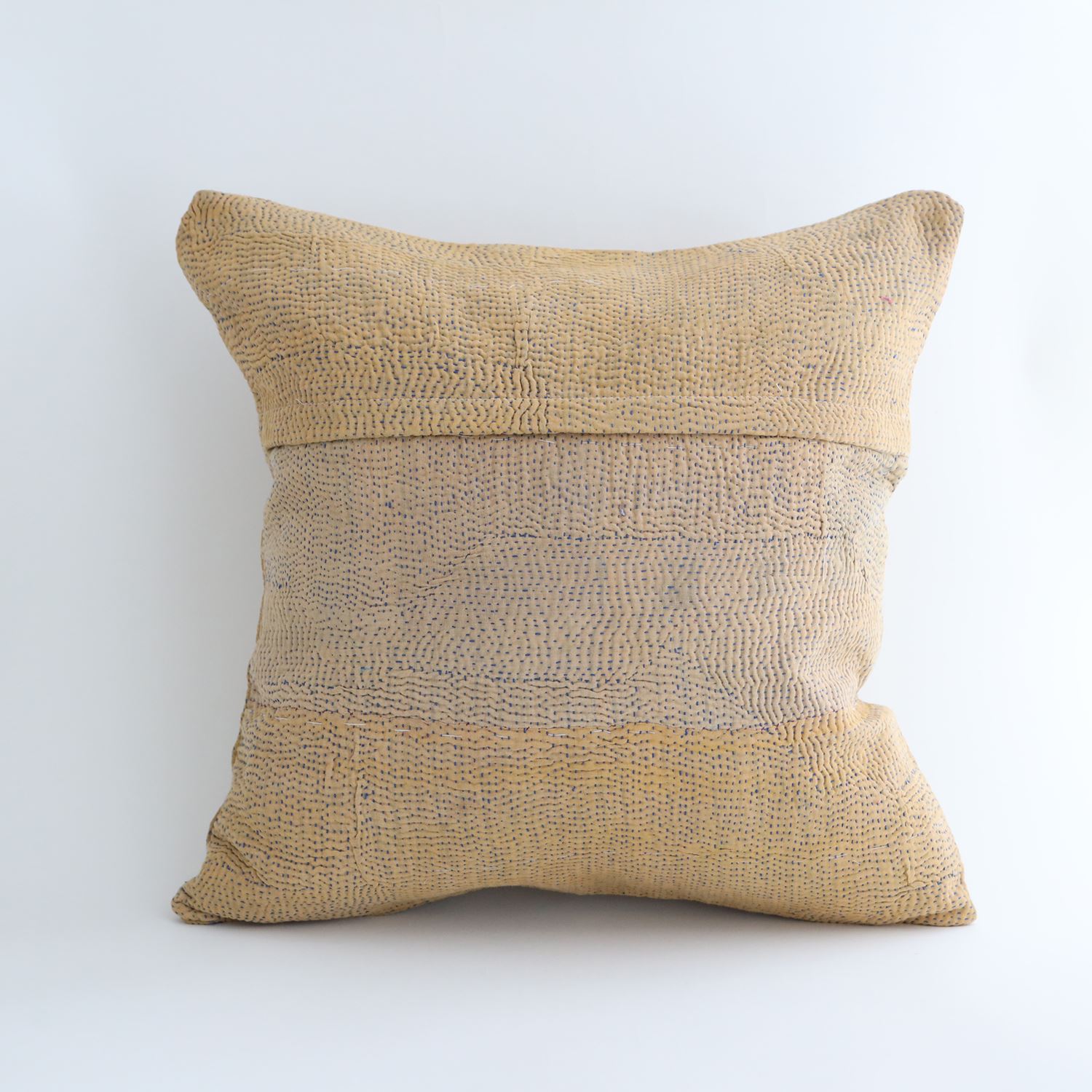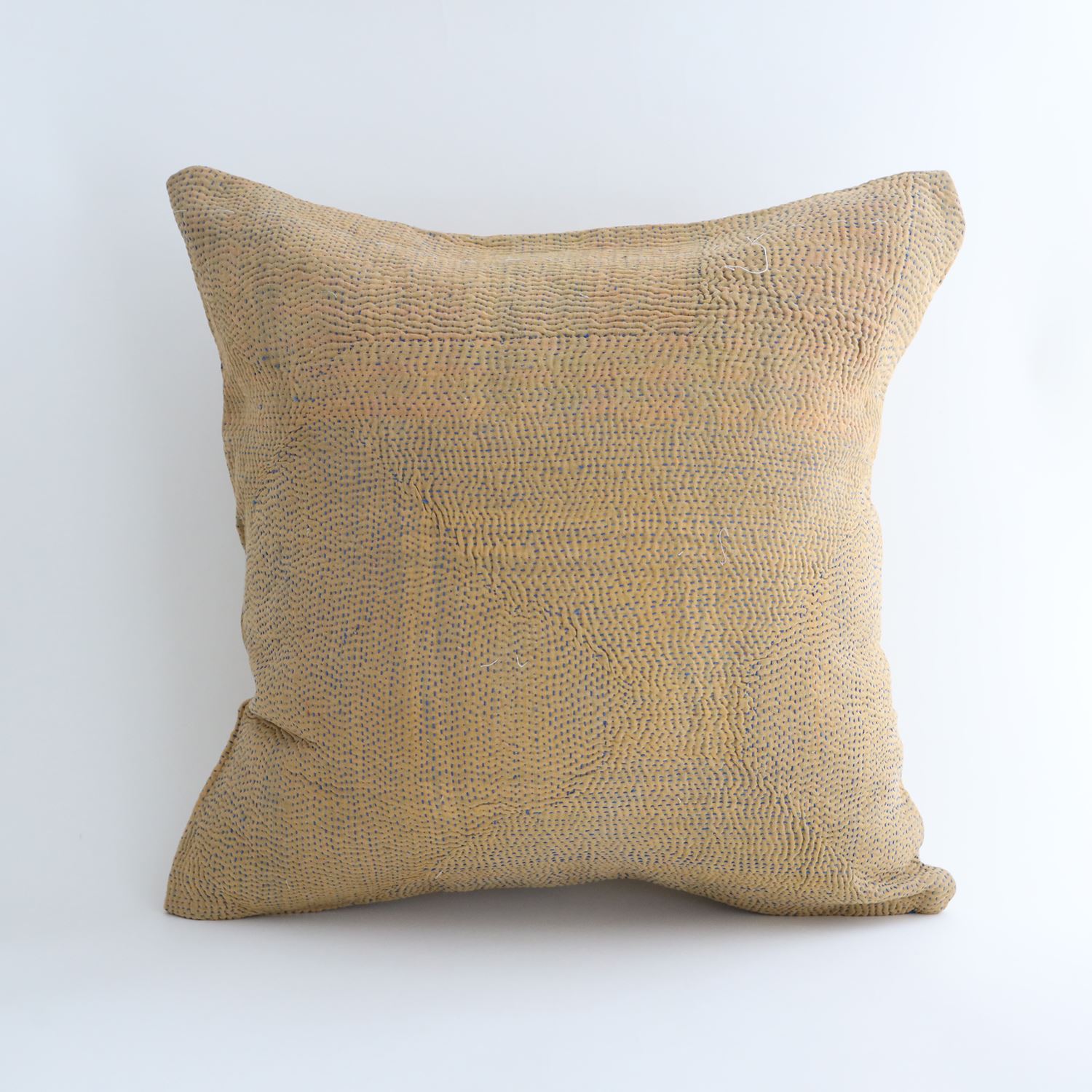 ラリーキルトを使ったクッションカバーです。ラリーキルトは、インド・パキスタンなどの中東アジアで、永い間受け継がれてきた伝統的な布です。古くなったサリーやデュパタ、腰布・古いハギレ等を貼り合わせてパッチワークし、丁寧に刺し子で合わせたもの。インダス河流域の遊牧民の家々では、嫁入り道具として母親から娘へ受け継がれています。気の遠くなるような作業を経て、わが子へ想いをこめて手渡します。一枚一枚に物語があって、何千年にも渡り母から娘へと伝えられる品。布の貼り合わせ方、刺し子の細やかさ、生地の厚みや柄など1つとして同じものはありません。丁寧にハンドメイドで作られているからこその味わいと魅力があります。