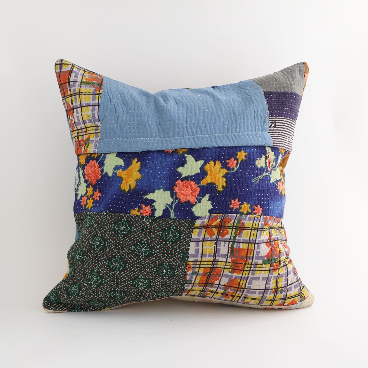 【一点物】ヴィンテージラリーキルト パッチワーク クッションカバー 45cm角