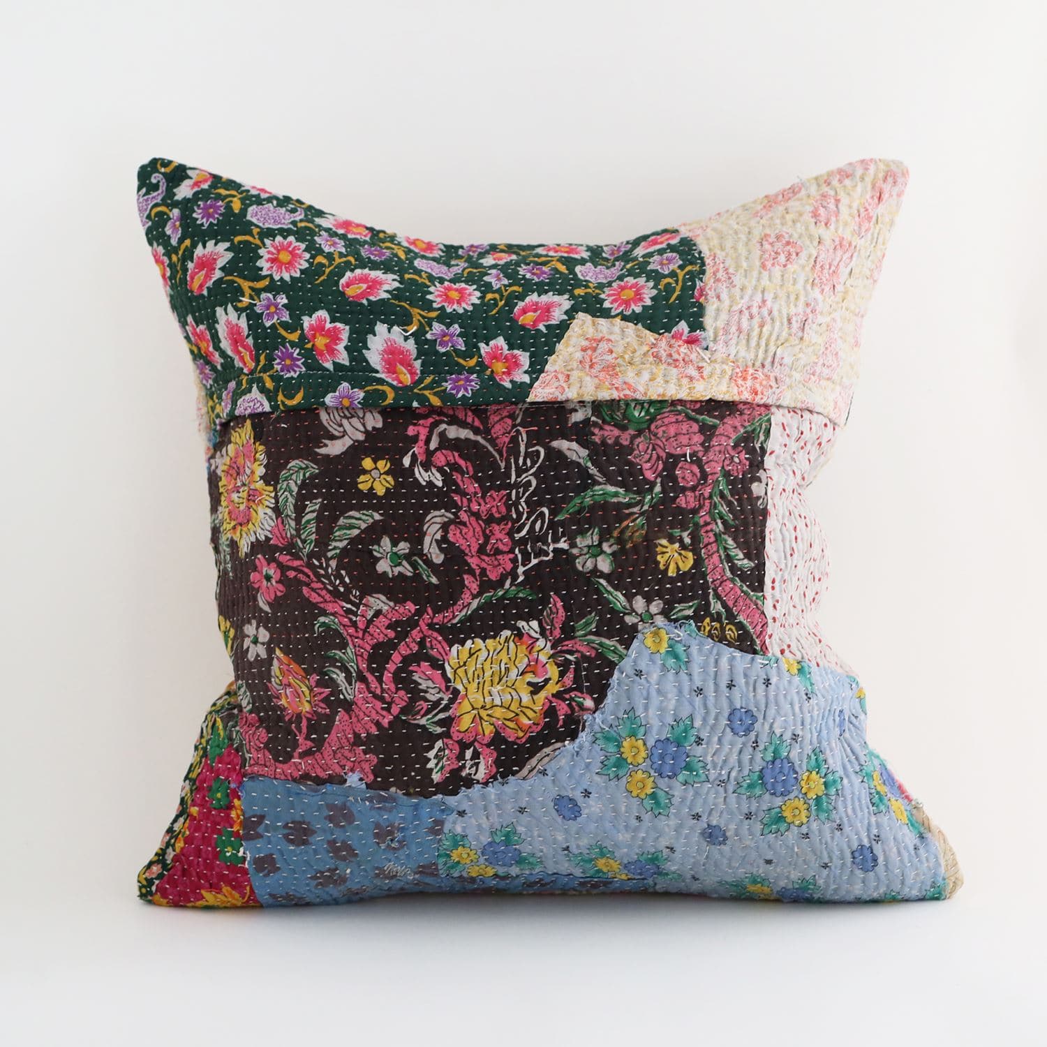 【一点物】ヴィンテージラリーキルト パッチワーク クッションカバー 45cm角
