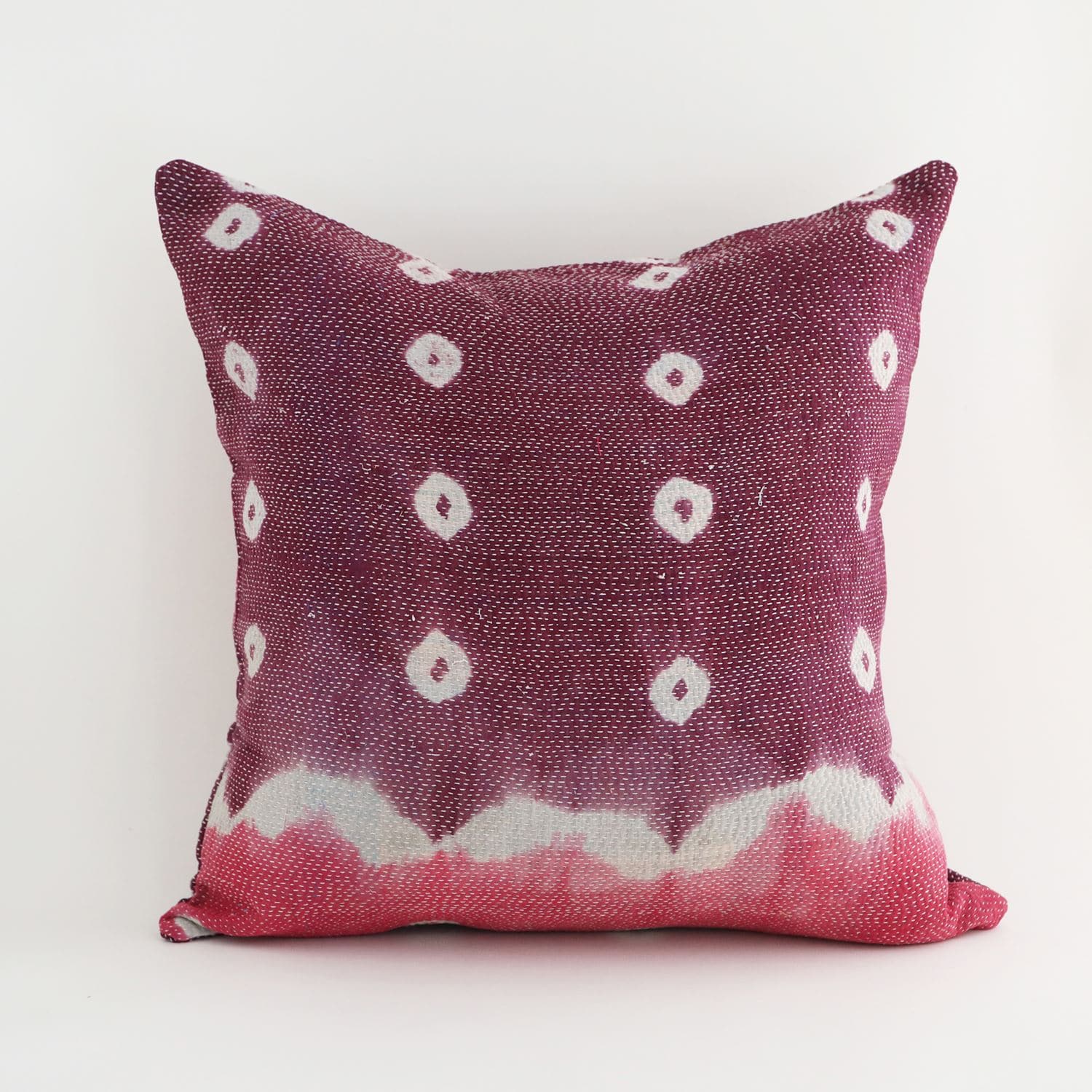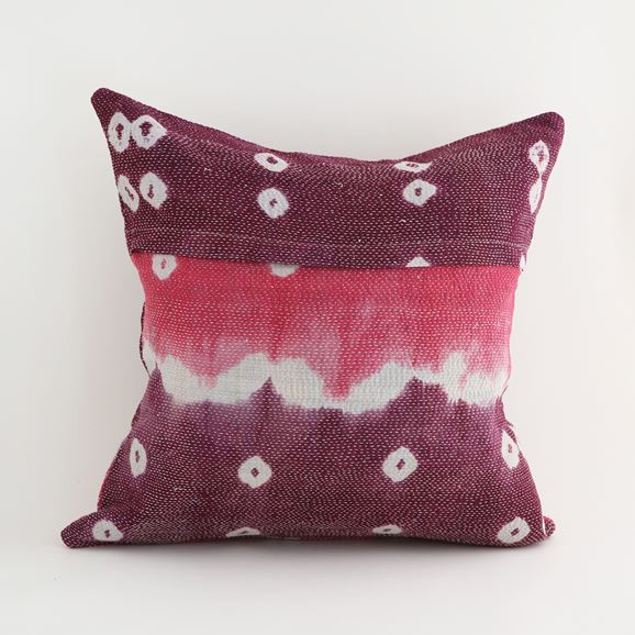 ラリーキルトを使ったクッションカバーです。ラリーキルトは、インド・パキスタンなどの中東アジアで、永い間受け継がれてきた伝統的な布です。古くなったサリーやデュパタ、腰布・古いハギレ等を貼り合わせてパッチワークし、丁寧に刺し子で合わせたもの。インダス河流域の遊牧民の家々では、嫁入り道具として母親から娘へ受け継がれています。気の遠くなるような作業を経て、わが子へ想いをこめて手渡します。一枚一枚に物語があって、何千年にも渡り母から娘へと伝えられる品。布の貼り合わせ方、刺し子の細やかさ、生地の厚みや柄など1つとして同じものはありません。丁寧にハンドメイドで作られているからこその味わいと魅力があります。