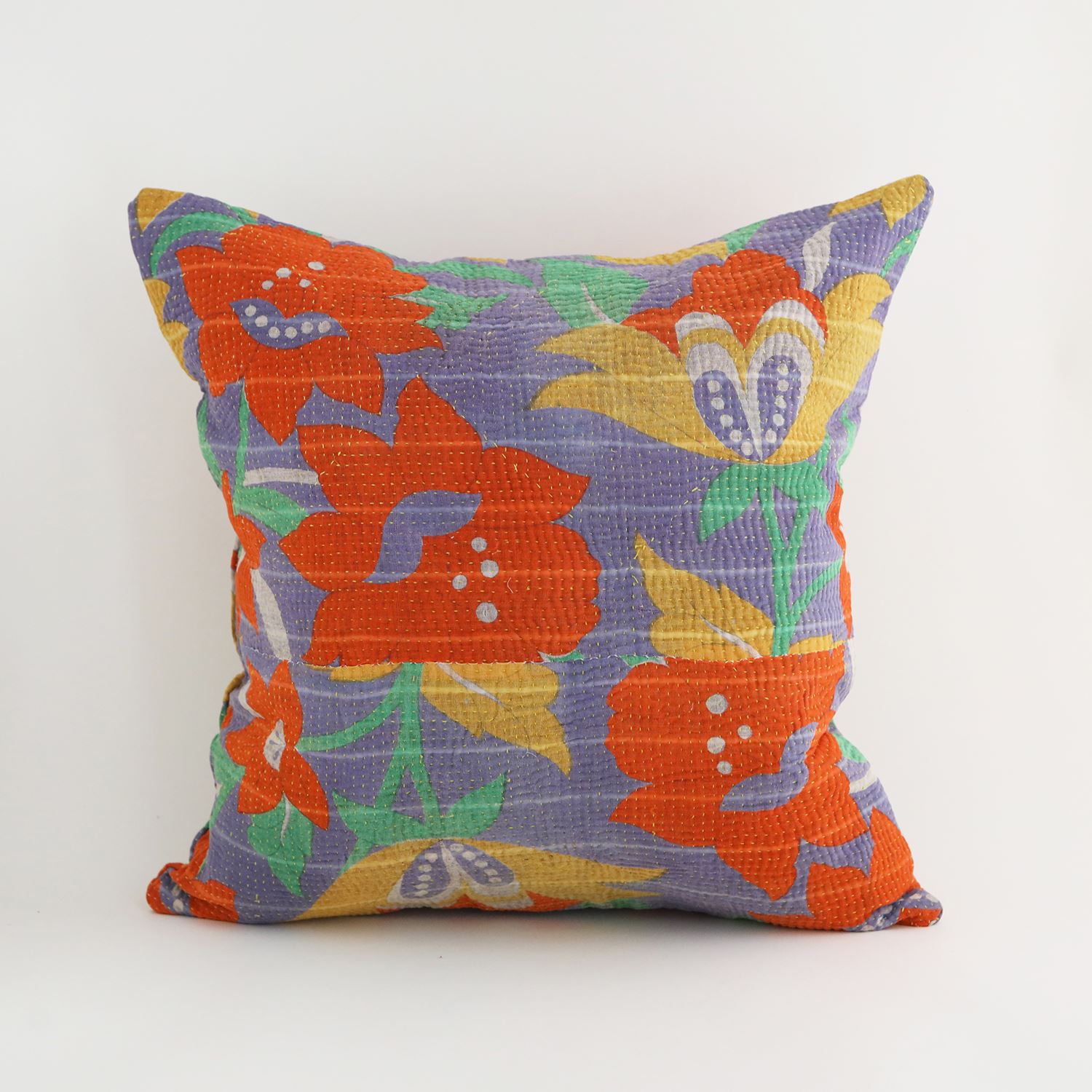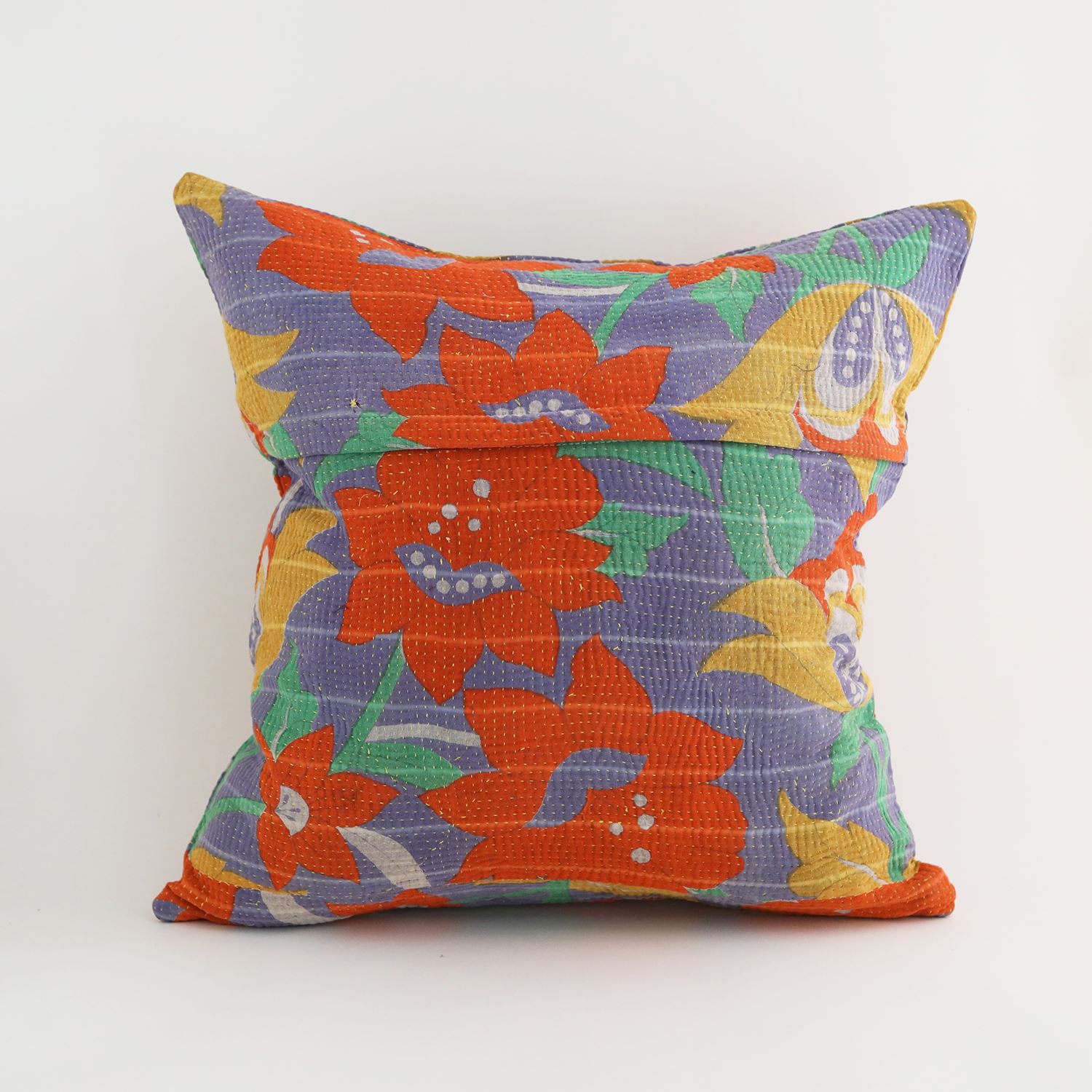 ラリーキルトを使ったクッションカバーです。ラリーキルトは、インド・パキスタンなどの中東アジアで、永い間受け継がれてきた伝統的な布です。古くなったサリーやデュパタ、腰布・古いハギレ等を貼り合わせてパッチワークし、丁寧に刺し子で合わせたもの。インダス河流域の遊牧民の家々では、嫁入り道具として母親から娘へ受け継がれています。気の遠くなるような作業を経て、わが子へ想いをこめて手渡します。一枚一枚に物語があって、何千年にも渡り母から娘へと伝えられる品。布の貼り合わせ方、刺し子の細やかさ、生地の厚みや柄など1つとして同じものはありません。丁寧にハンドメイドで作られているからこその味わいと魅力があります。