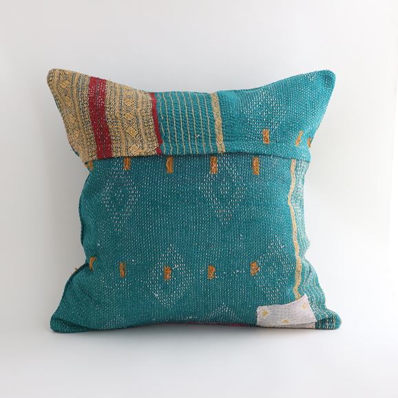 ラリーキルトを使ったクッションカバーです。ラリーキルトは、インド・パキスタンなどの中東アジアで、永い間受け継がれてきた伝統的な布です。古くなったサリーやデュパタ、腰布・古いハギレ等を貼り合わせてパッチワークし、丁寧に刺し子で合わせたもの。インダス河流域の遊牧民の家々では、嫁入り道具として母親から娘へ受け継がれています。気の遠くなるような作業を経て、わが子へ想いをこめて手渡します。一枚一枚に物語があって、何千年にも渡り母から娘へと伝えられる品。布の貼り合わせ方、刺し子の細やかさ、生地の厚みや柄など1つとして同じものはありません。丁寧にハンドメイドで作られているからこその味わいと魅力があります。