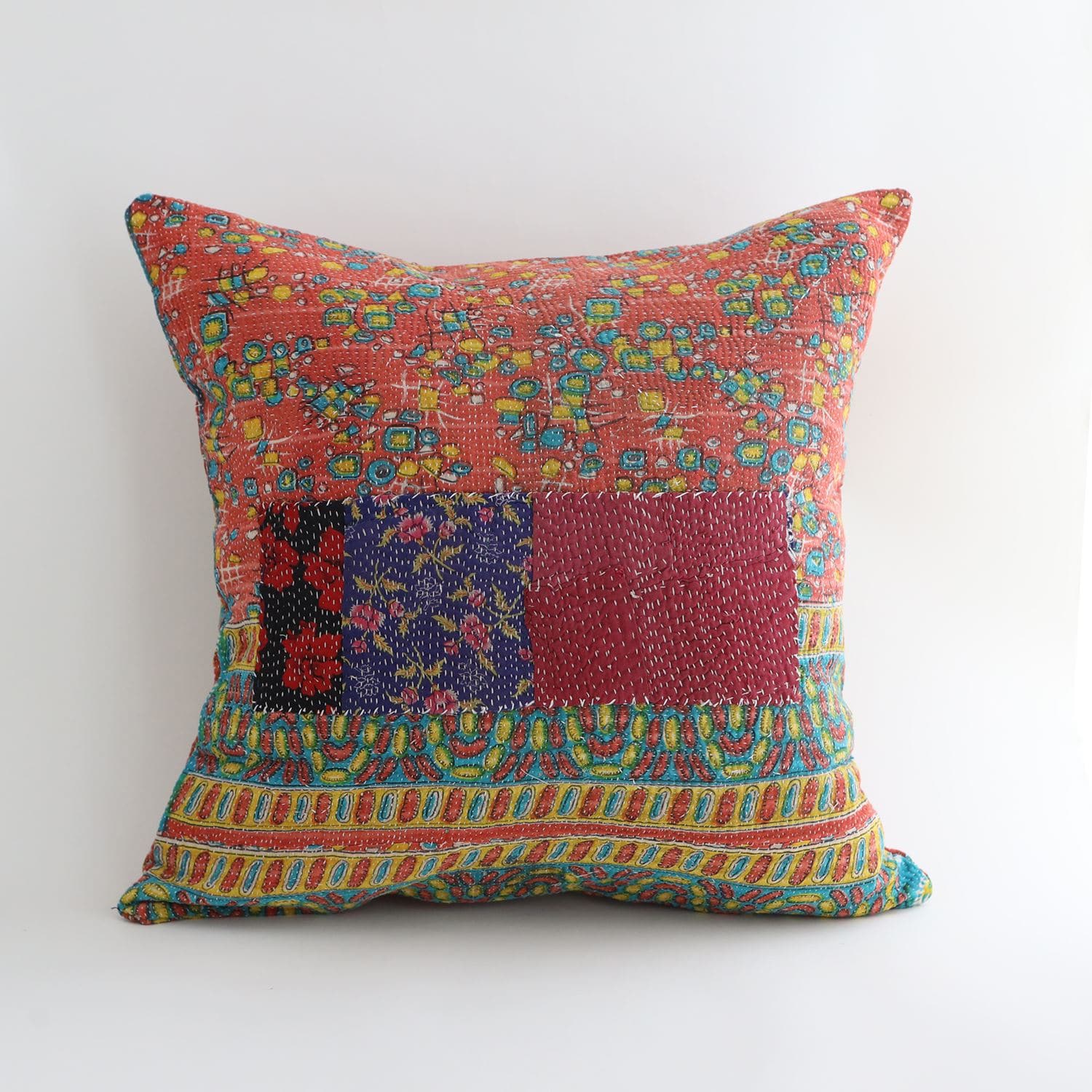 【一点物】ヴィンテージラリーキルト パッチワーク クッションカバー 45cm角