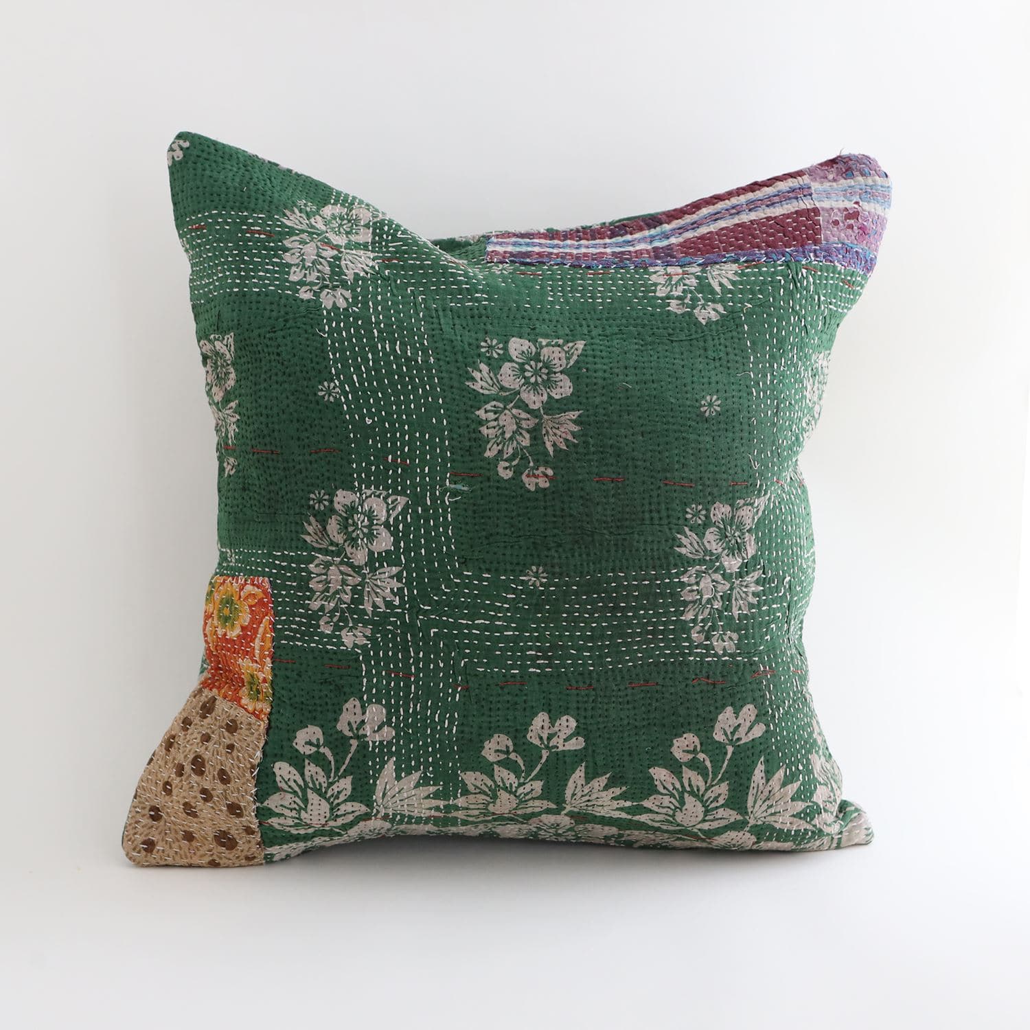 ラリーキルトを使ったクッションカバーです。ラリーキルトは、インド・パキスタンなどの中東アジアで、永い間受け継がれてきた伝統的な布です。古くなったサリーやデュパタ、腰布・古いハギレ等を貼り合わせてパッチワークし、丁寧に刺し子で合わせたもの。インダス河流域の遊牧民の家々では、嫁入り道具として母親から娘へ受け継がれています。気の遠くなるような作業を経て、わが子へ想いをこめて手渡します。一枚一枚に物語があって、何千年にも渡り母から娘へと伝えられる品。布の貼り合わせ方、刺し子の細やかさ、生地の厚みや柄など1つとして同じものはありません。丁寧にハンドメイドで作られているからこその味わいと魅力があります。