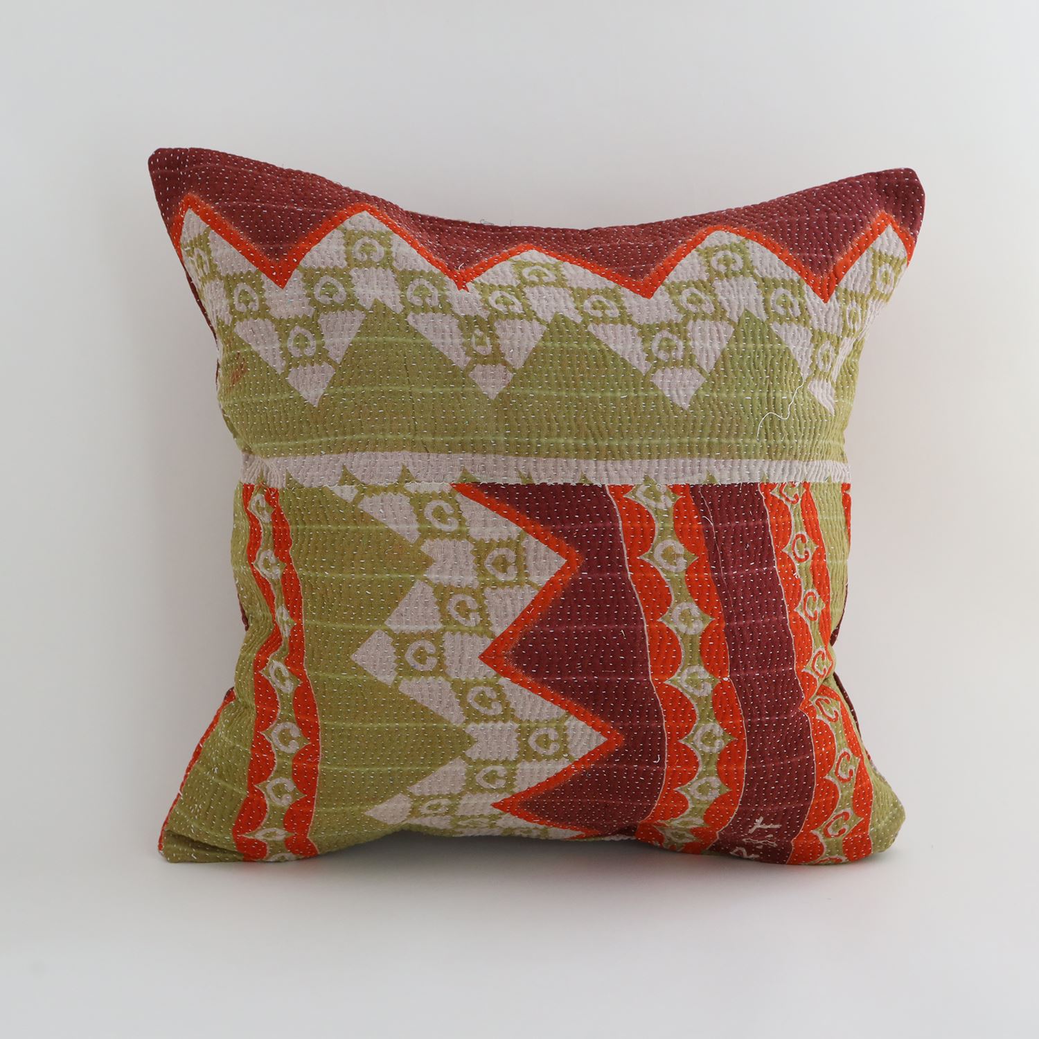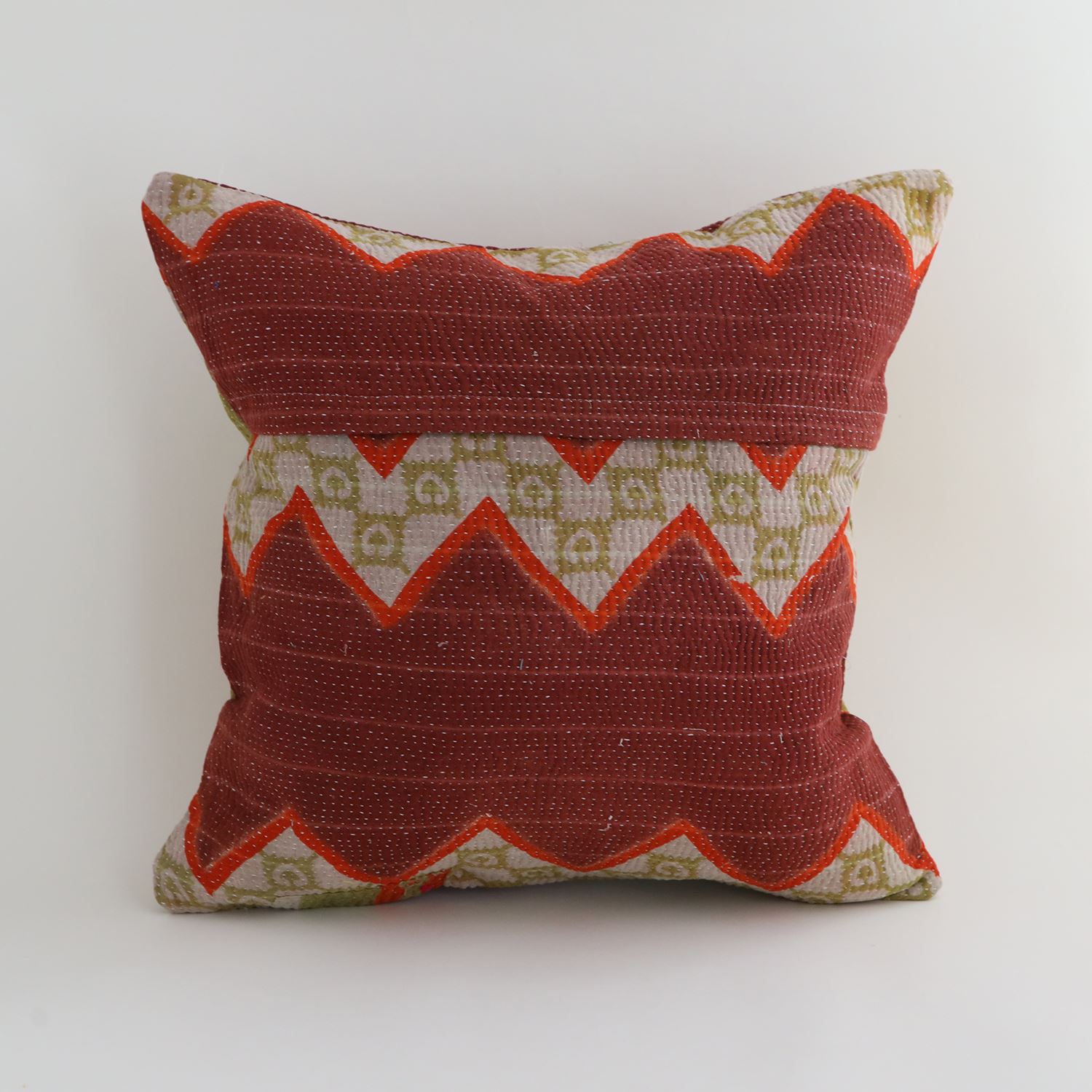 ラリーキルトを使ったクッションカバーです。ラリーキルトは、インド・パキスタンなどの中東アジアで、永い間受け継がれてきた伝統的な布です。古くなったサリーやデュパタ、腰布・古いハギレ等を貼り合わせてパッチワークし、丁寧に刺し子で合わせたもの。インダス河流域の遊牧民の家々では、嫁入り道具として母親から娘へ受け継がれています。気の遠くなるような作業を経て、わが子へ想いをこめて手渡します。一枚一枚に物語があって、何千年にも渡り母から娘へと伝えられる品。布の貼り合わせ方、刺し子の細やかさ、生地の厚みや柄など1つとして同じものはありません。丁寧にハンドメイドで作られているからこその味わいと魅力があります。