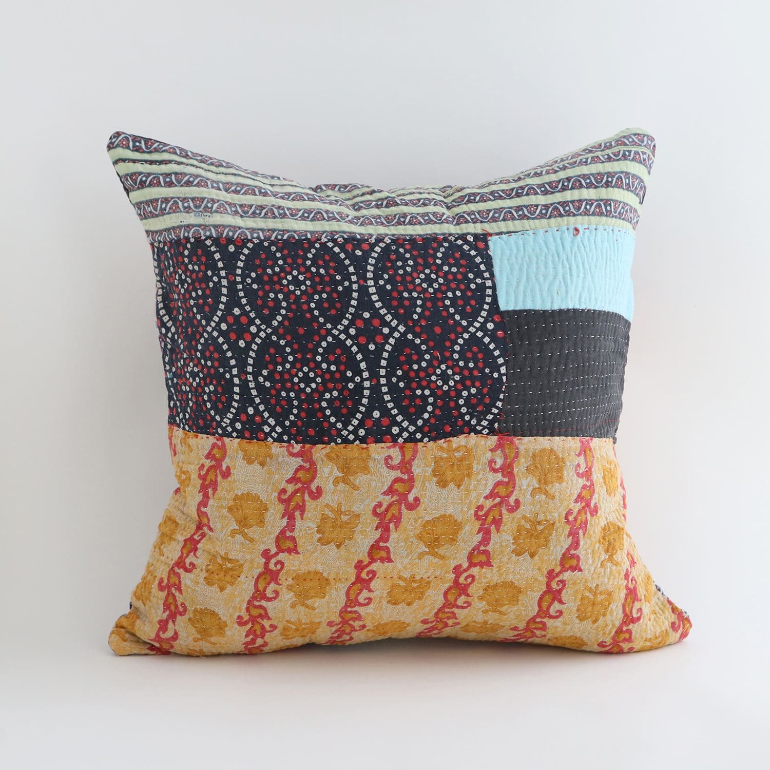 【一点物】ヴィンテージラリーキルト パッチワーク クッションカバー 45cm角