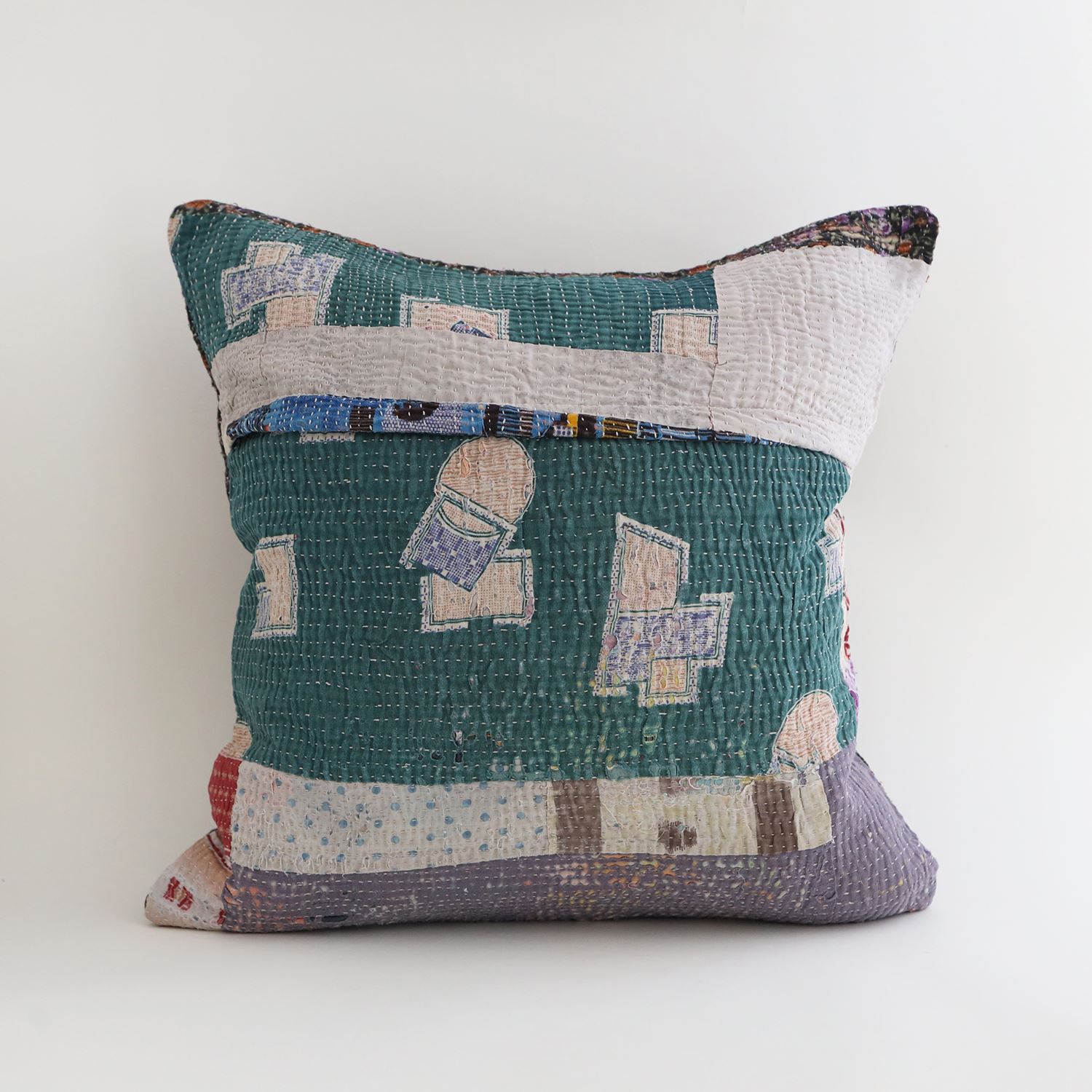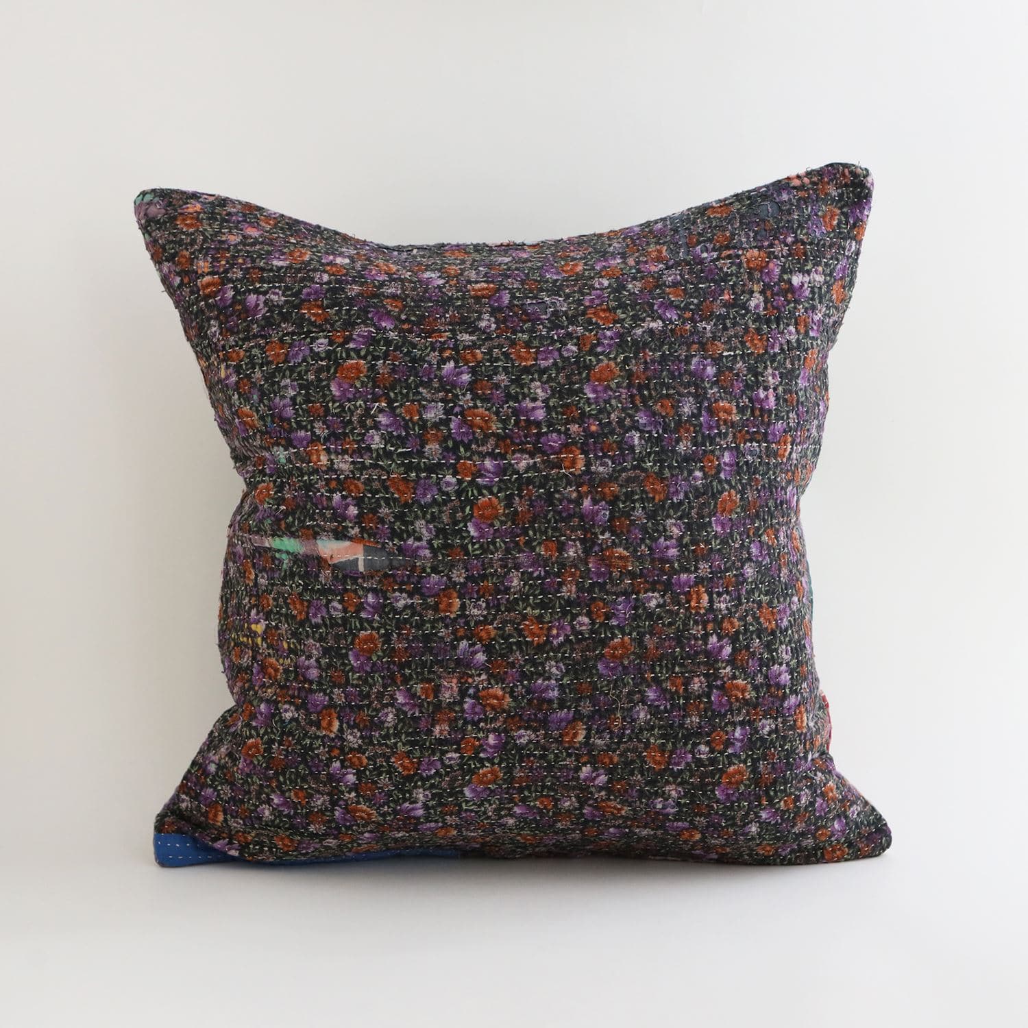 ラリーキルトを使ったクッションカバーです。ラリーキルトは、インド・パキスタンなどの中東アジアで、永い間受け継がれてきた伝統的な布です。古くなったサリーやデュパタ、腰布・古いハギレ等を貼り合わせてパッチワークし、丁寧に刺し子で合わせたもの。インダス河流域の遊牧民の家々では、嫁入り道具として母親から娘へ受け継がれています。気の遠くなるような作業を経て、わが子へ想いをこめて手渡します。一枚一枚に物語があって、何千年にも渡り母から娘へと伝えられる品。布の貼り合わせ方、刺し子の細やかさ、生地の厚みや柄など1つとして同じものはありません。丁寧にハンドメイドで作られているからこその味わいと魅力があります。