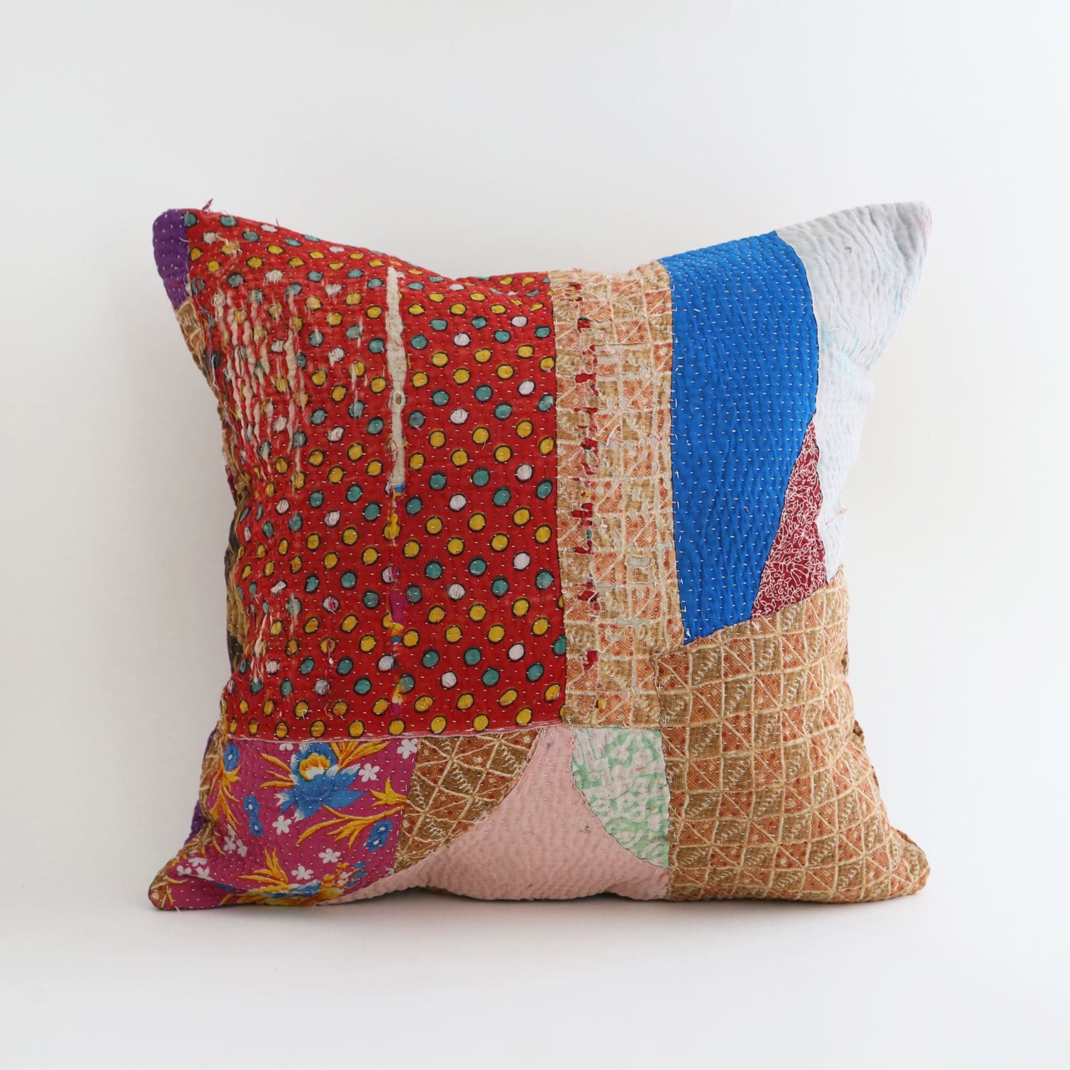 【一点物】ヴィンテージラリーキルト パッチワーク クッションカバー 45cm角