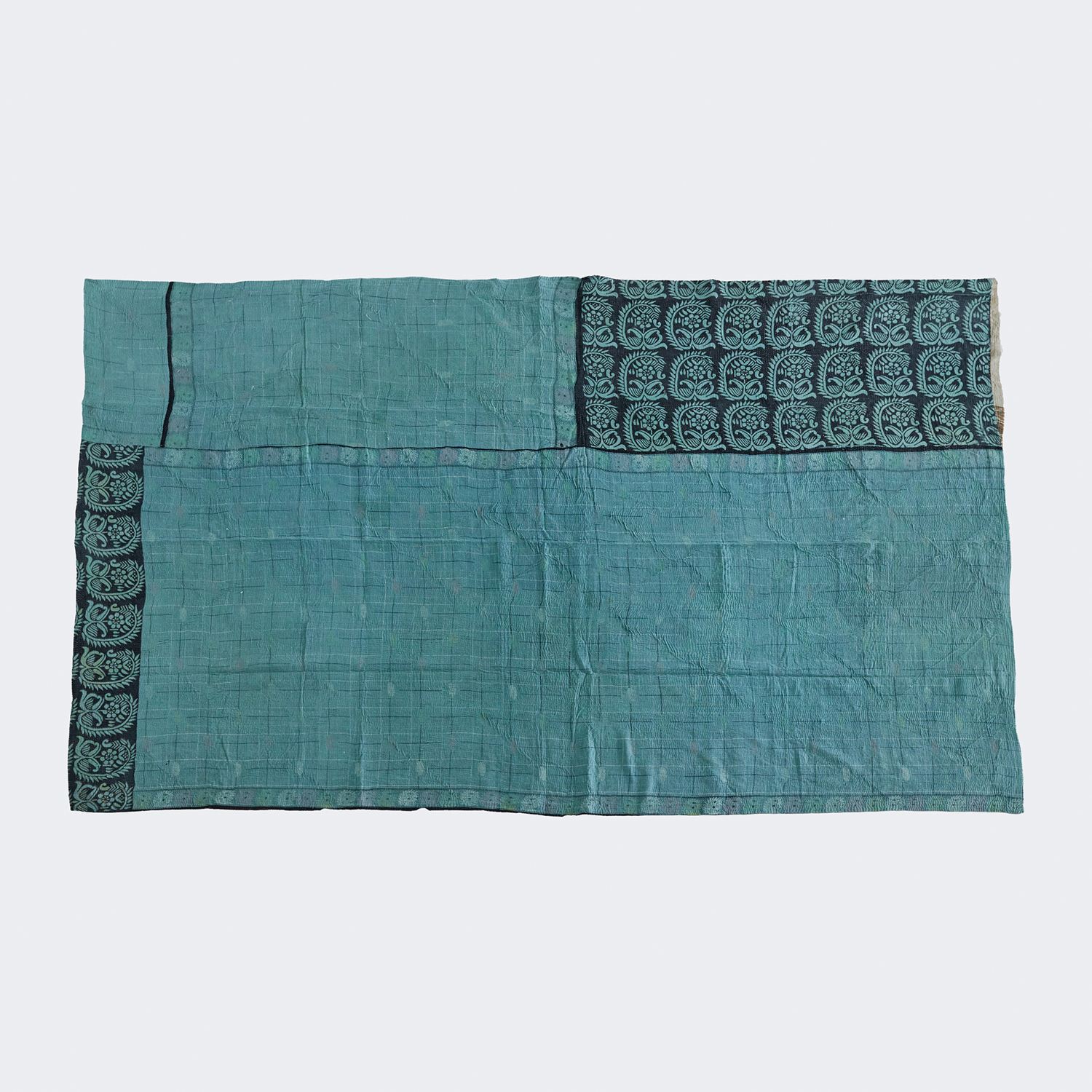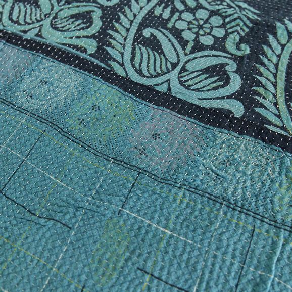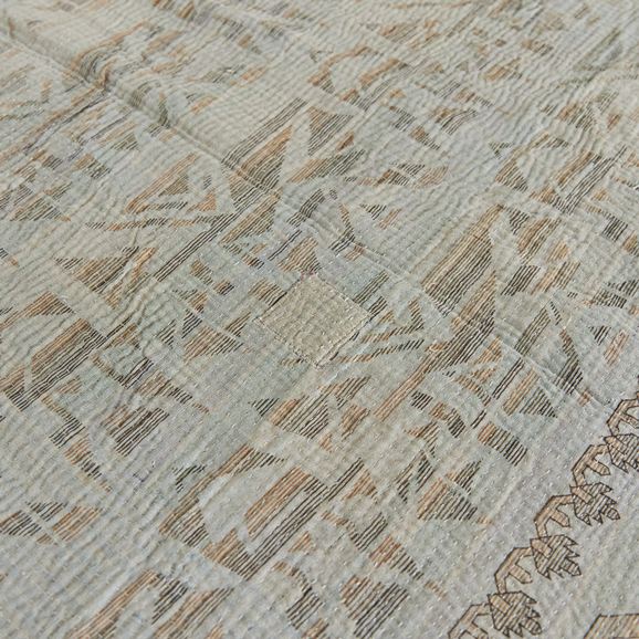 ラリー キルトは、インド・パキスタンなどの中東アジアで、永い間受け継がれてきた伝統的な布です。古くなったサリーやデュパタ、腰布・古いハギレ等を貼り合わせてパッチワークし、丁寧に刺し子で合わせたもの。インダス河流域の遊牧民の家々では、嫁入り道具として母親から娘へ受け継がれています。気の遠くなるような作業を経て、わが子へ想いをこめて手渡します。一枚一枚に物語があって、何千年にも渡り母から娘へと伝えられる品。布の貼り合わせ方、刺し子の細やかさ、生地の厚みや柄など1つとして同じものはありません。丁寧にハンドメイドで作られているからこその味わいと魅力があります。