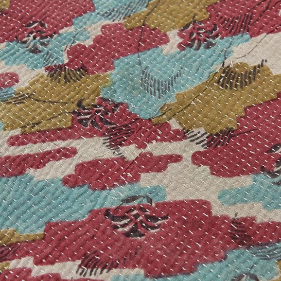 ラリー キルトは、インド・パキスタンなどの中東アジアで、永い間受け継がれてきた伝統的な布です。古くなったサリーやデュパタ、腰布・古いハギレ等を貼り合わせてパッチワークし、丁寧に刺し子で合わせたもの。インダス河流域の遊牧民の家々では、嫁入り道具として母親から娘へ受け継がれています。気の遠くなるような作業を経て、わが子へ想いをこめて手渡します。一枚一枚に物語があって、何千年にも渡り母から娘へと伝えられる品。布の貼り合わせ方、刺し子の細やかさ、生地の厚みや柄など1つとして同じものはありません。丁寧にハンドメイドで作られているからこその味わいと魅力があります。