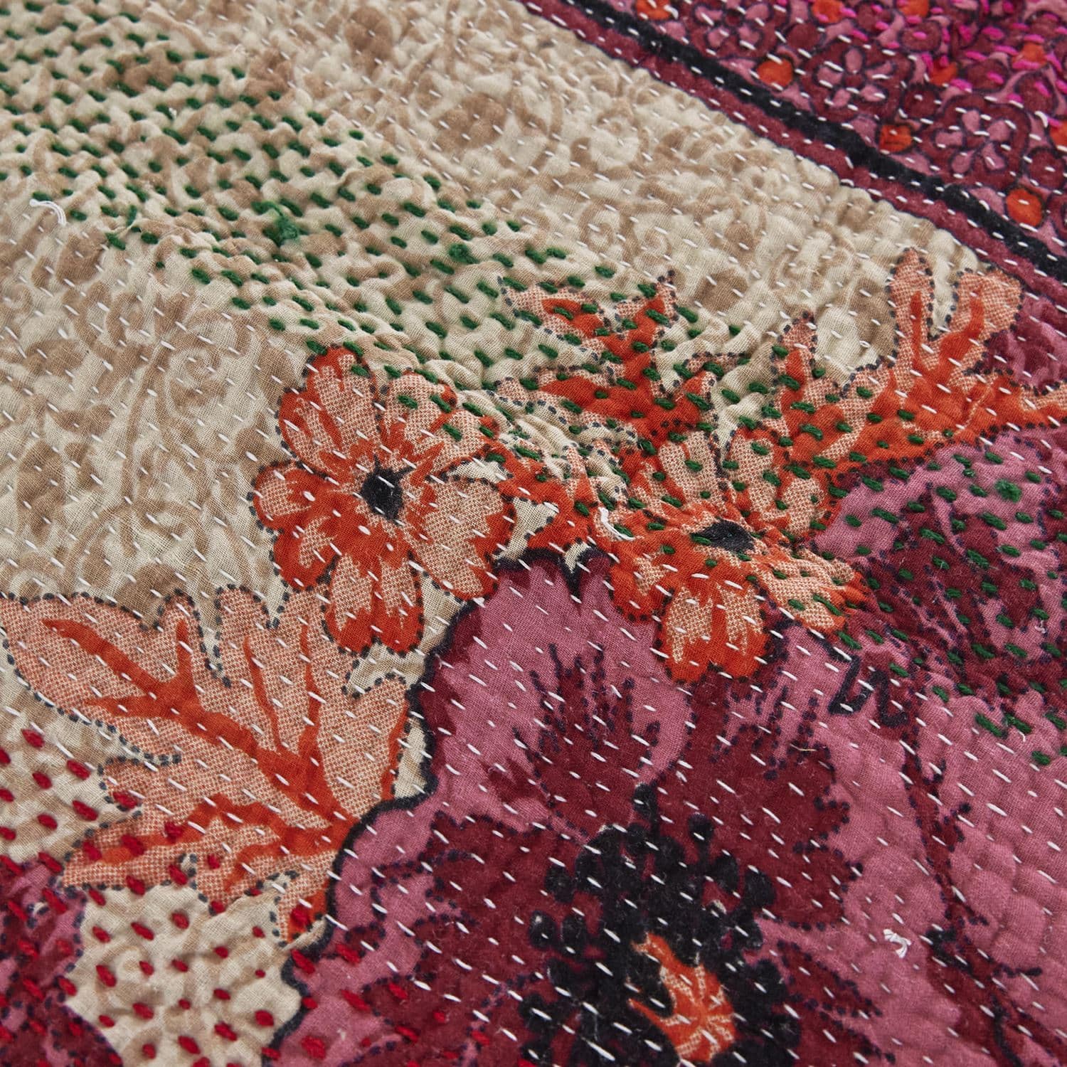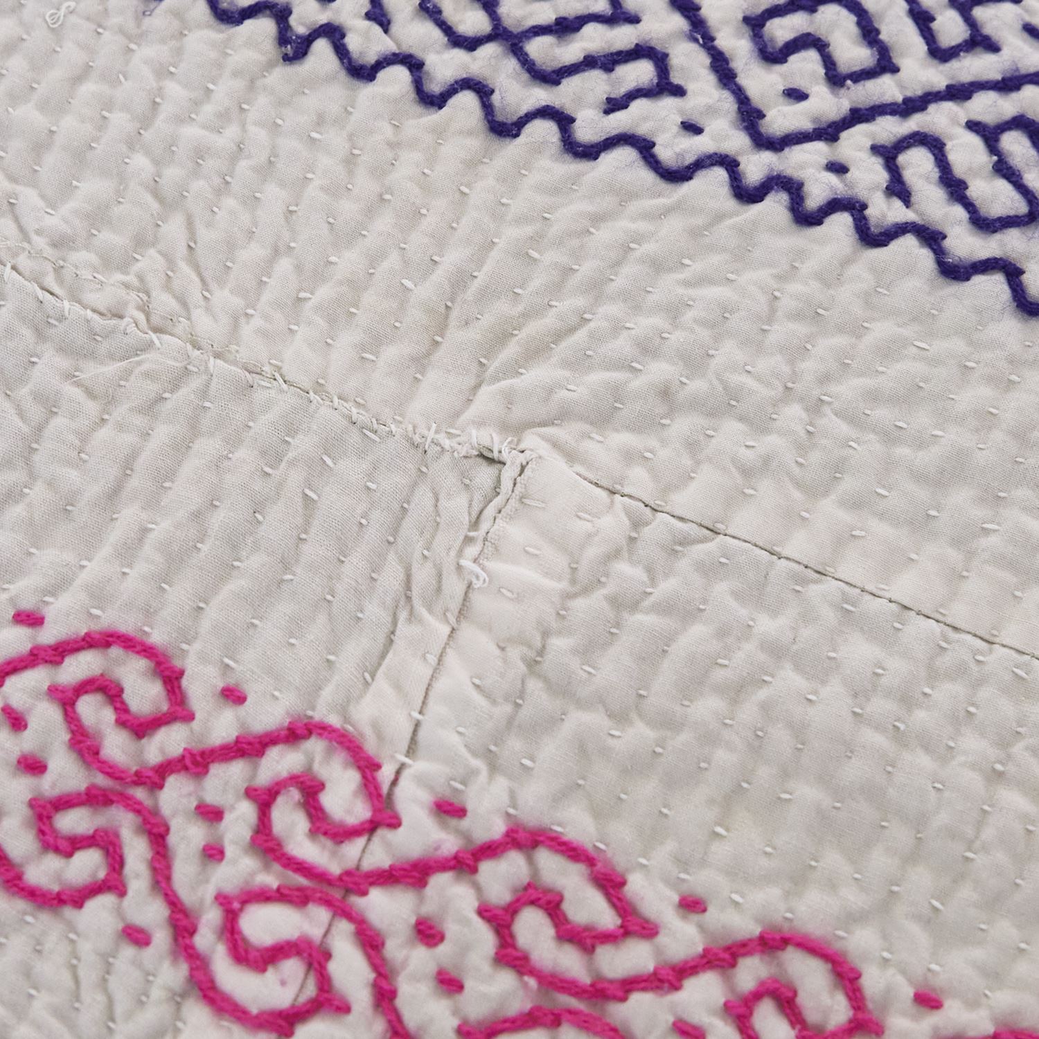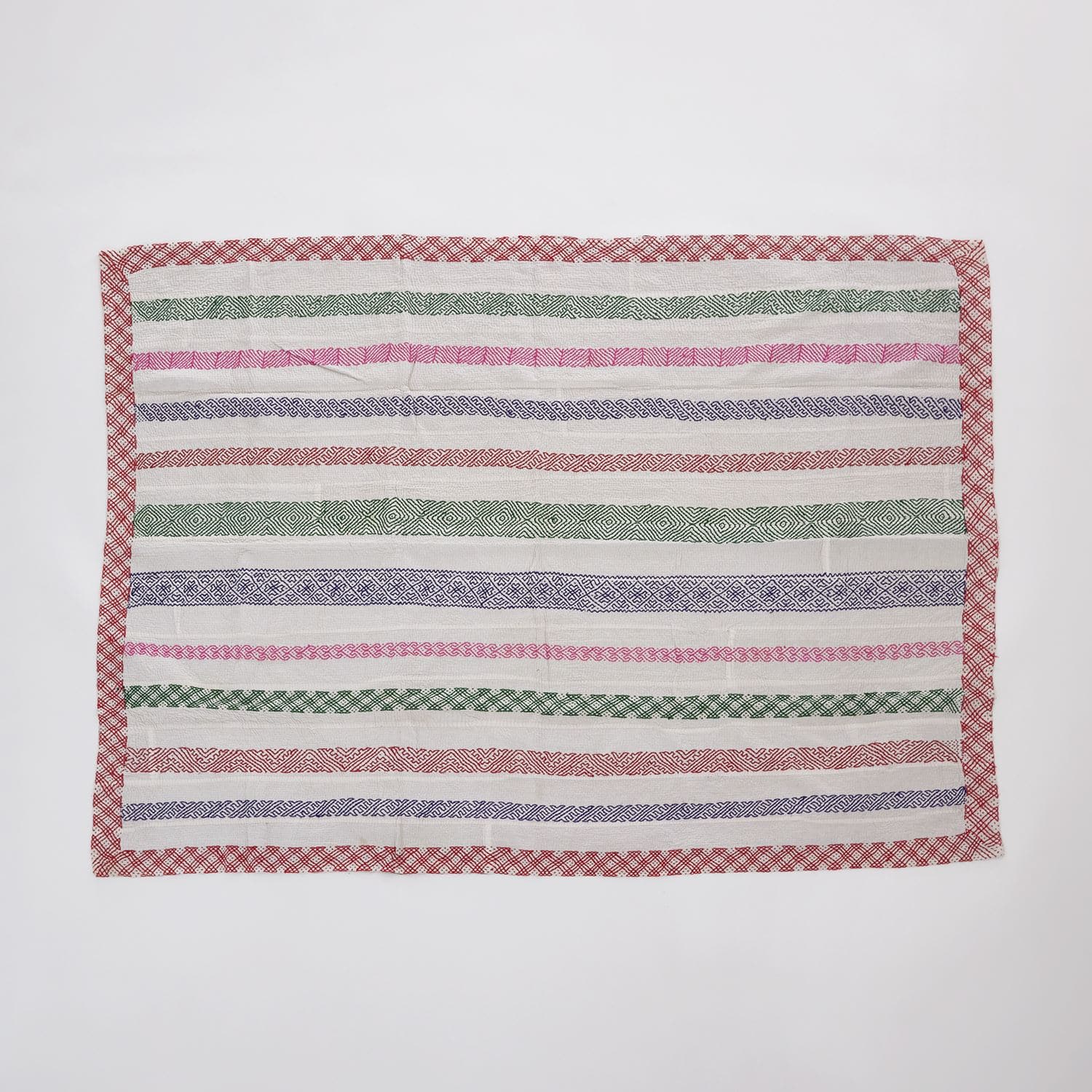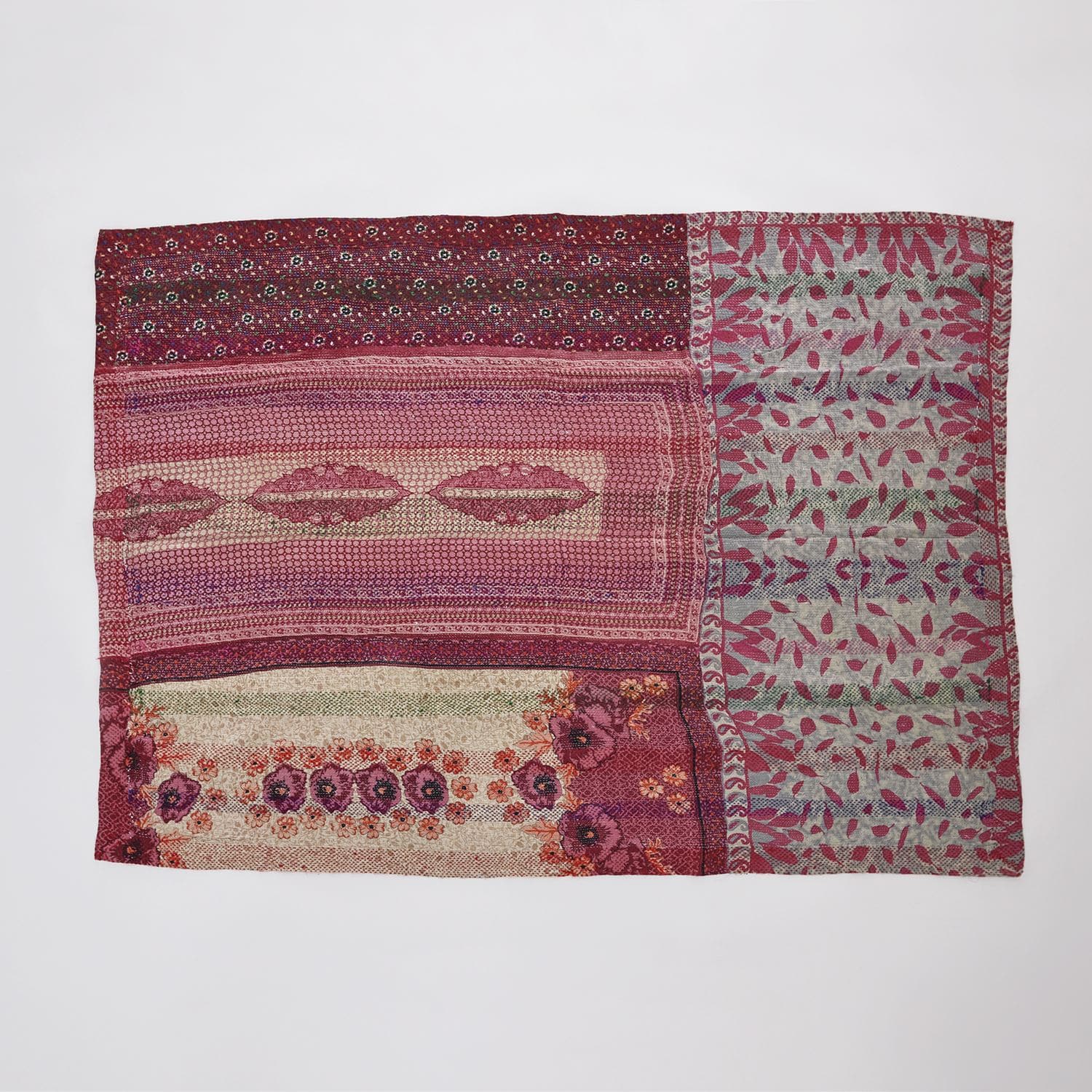 ラリー キルトは、インド・パキスタンなどの中東アジアで、永い間受け継がれてきた伝統的な布です。古くなったサリーやデュパタ、腰布・古いハギレ等を貼り合わせてパッチワークし、丁寧に刺し子で合わせたもの。インダス河流域の遊牧民の家々では、嫁入り道具として母親から娘へ受け継がれています。気の遠くなるような作業を経て、わが子へ想いをこめて手渡します。一枚一枚に物語があって、何千年にも渡り母から娘へと伝えられる品。布の貼り合わせ方、刺し子の細やかさ、生地の厚みや柄など1つとして同じものはありません。丁寧にハンドメイドで作られているからこその味わいと魅力があります。