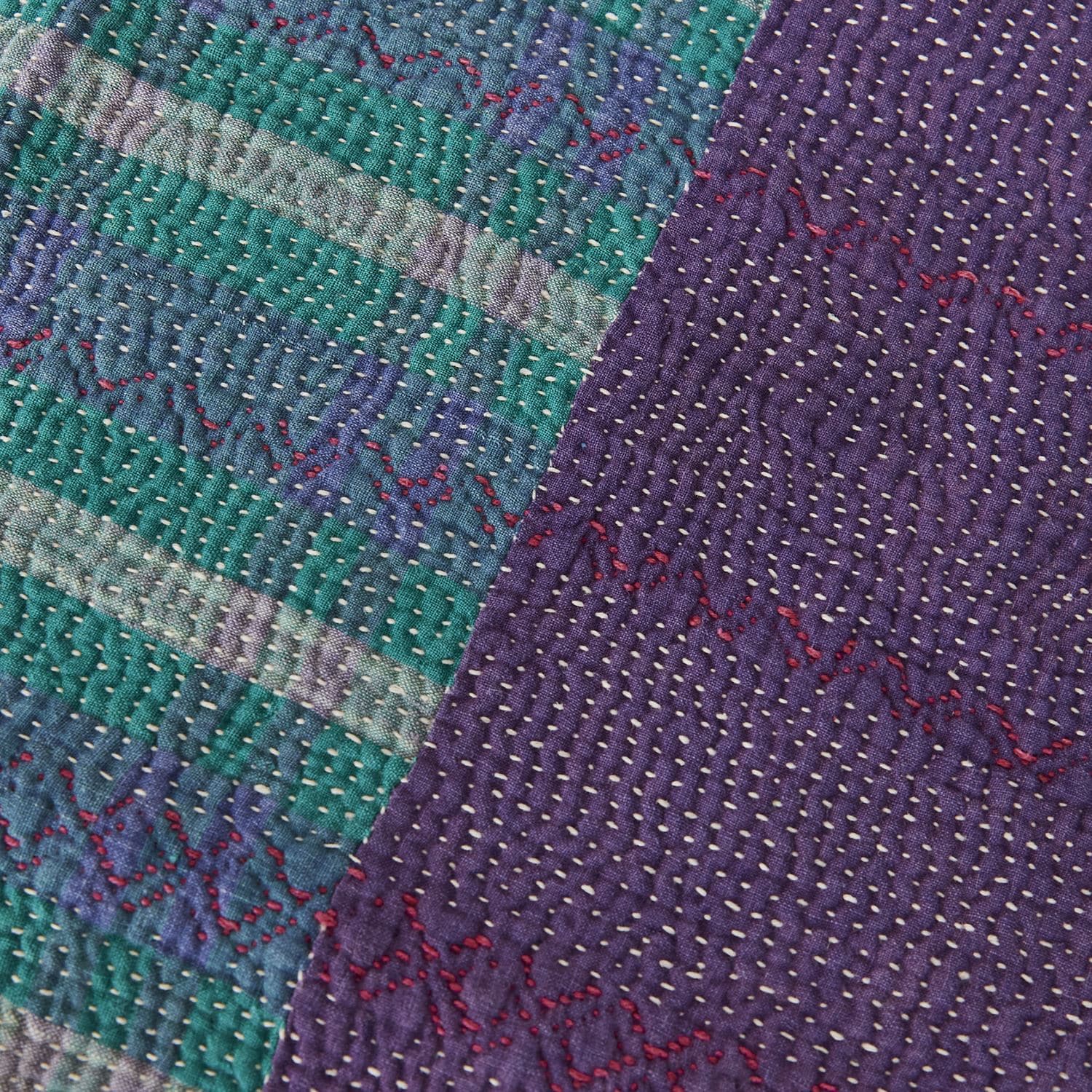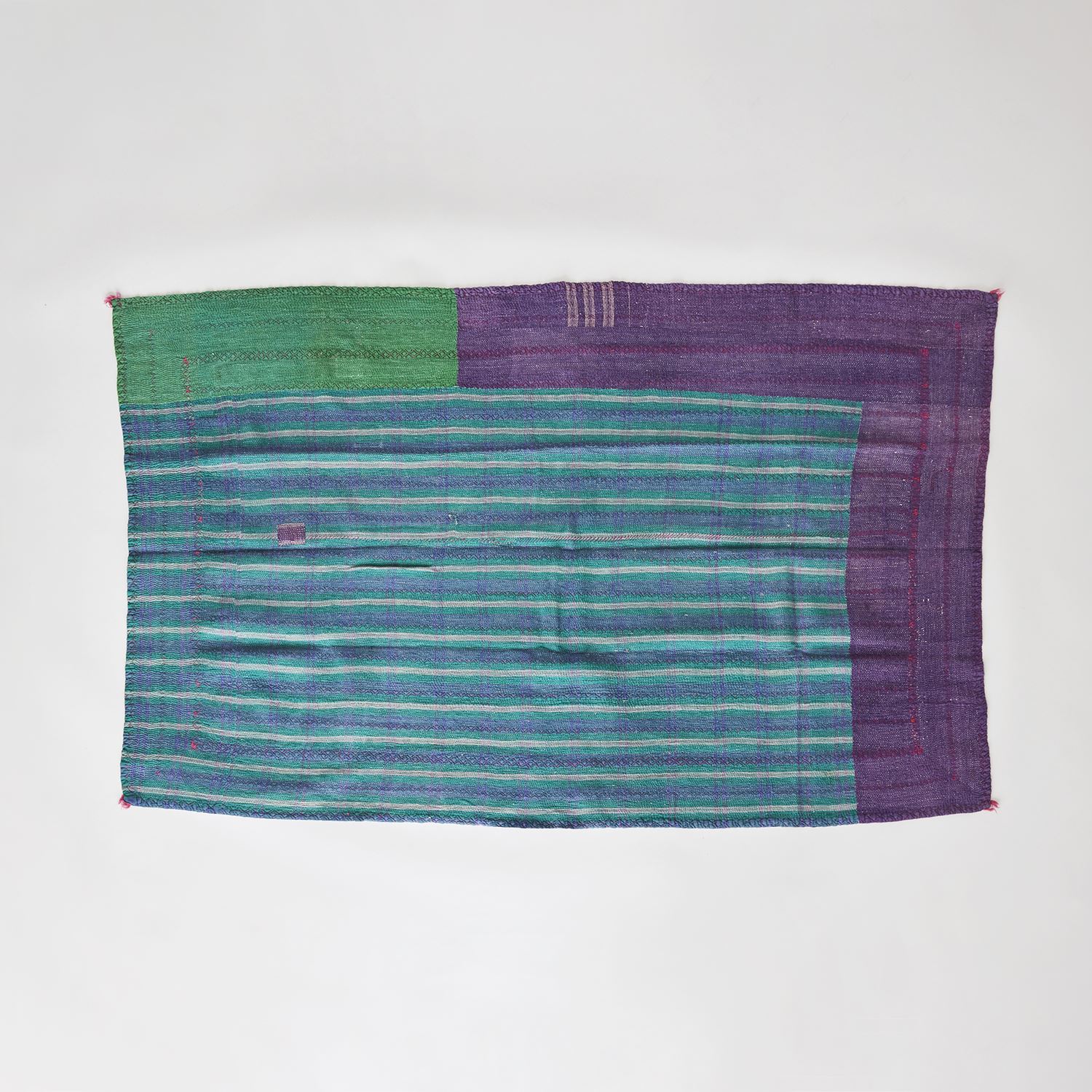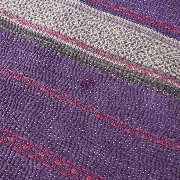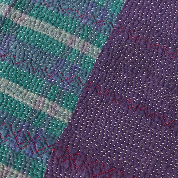 ラリー キルトは、インド・パキスタンなどの中東アジアで、永い間受け継がれてきた伝統的な布です。古くなったサリーやデュパタ、腰布・古いハギレ等を貼り合わせてパッチワークし、丁寧に刺し子で合わせたもの。インダス河流域の遊牧民の家々では、嫁入り道具として母親から娘へ受け継がれています。気の遠くなるような作業を経て、わが子へ想いをこめて手渡します。一枚一枚に物語があって、何千年にも渡り母から娘へと伝えられる品。布の貼り合わせ方、刺し子の細やかさ、生地の厚みや柄など1つとして同じものはありません。丁寧にハンドメイドで作られているからこその味わいと魅力があります。