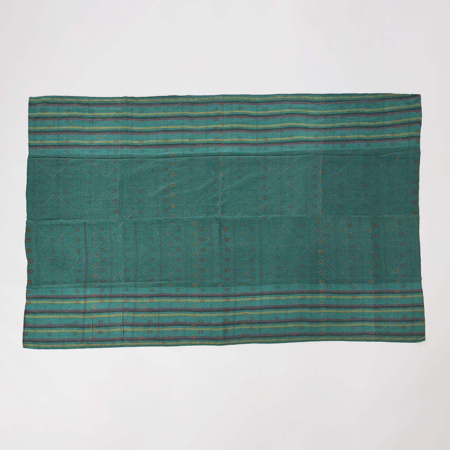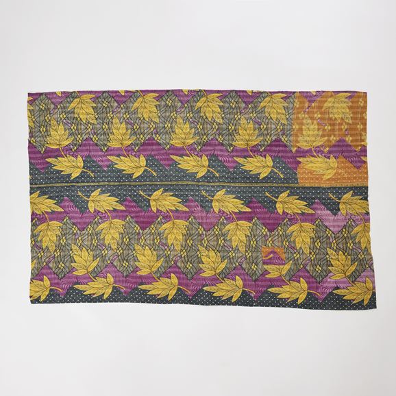 ラリー キルトは、インド・パキスタンなどの中東アジアで、永い間受け継がれてきた伝統的な布です。古くなったサリーやデュパタ、腰布・古いハギレ等を貼り合わせてパッチワークし、丁寧に刺し子で合わせたもの。インダス河流域の遊牧民の家々では、嫁入り道具として母親から娘へ受け継がれています。気の遠くなるような作業を経て、わが子へ想いをこめて手渡します。一枚一枚に物語があって、何千年にも渡り母から娘へと伝えられる品。布の貼り合わせ方、刺し子の細やかさ、生地の厚みや柄など1つとして同じものはありません。丁寧にハンドメイドで作られているからこその味わいと魅力があります。