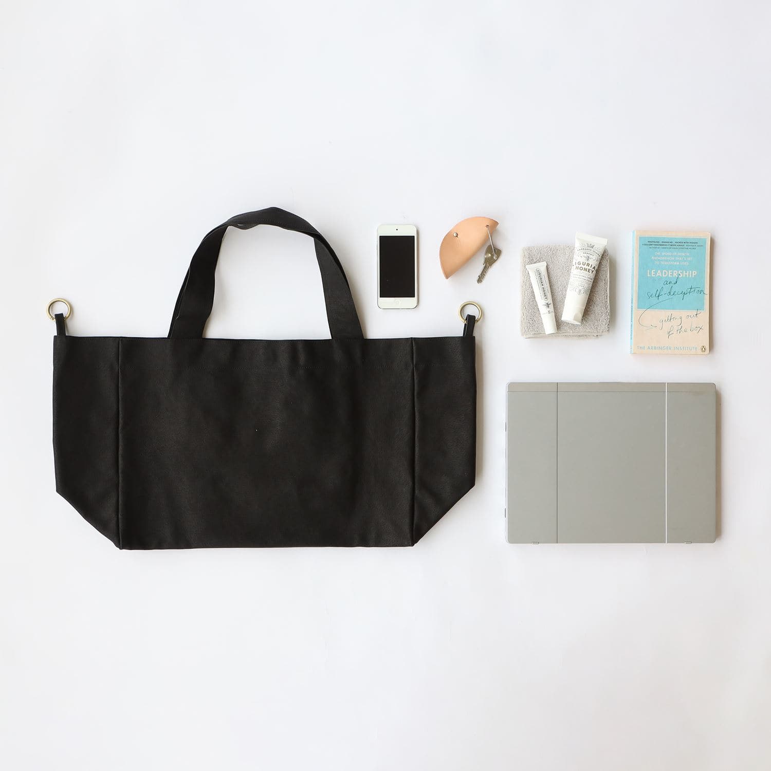 CORONシリーズから普段使いでも、旅のお供としても両立できるサイズのバッグが登場しました。お仕事や普段遣い、旅のお供にも色々なシーンでお使いいただけます。はじめは紙のようなパリッとした風合いのマテリアルが、お使いいただくことで艶感と柔らかさが生まれ、味わい深いバッグへと経年変化を遂げるのがARAIの魅力。付属の肩紐はカラビナで脱着できます。