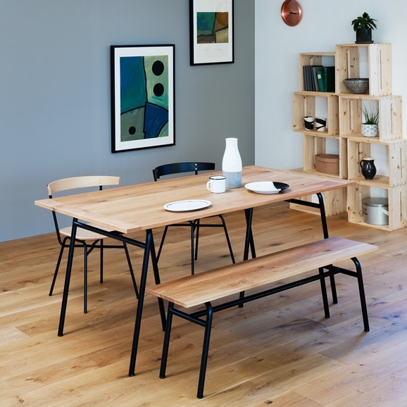 - こちらの商品はSOUDIEUX TABLE 1600×1、FERRET CHAIR WOOD SEAT Black×2、SOUDIEUX BENCH×1がセットになっています。