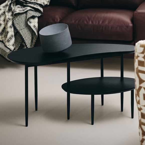 小さい天板は床からの高さが220mmなので、PUUFやクッションなどでくつろぎながら使うローテーブルやソファ前におすすめ。