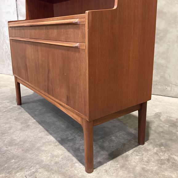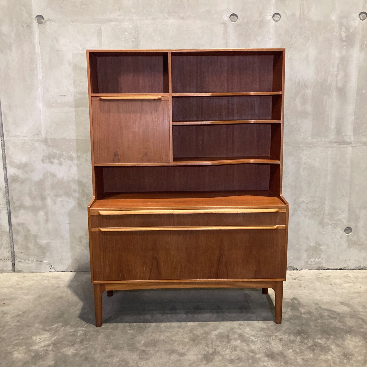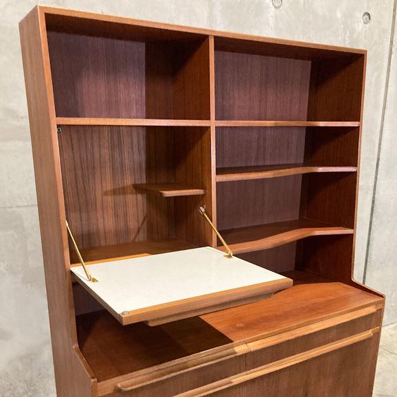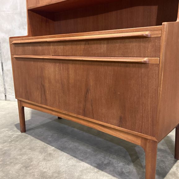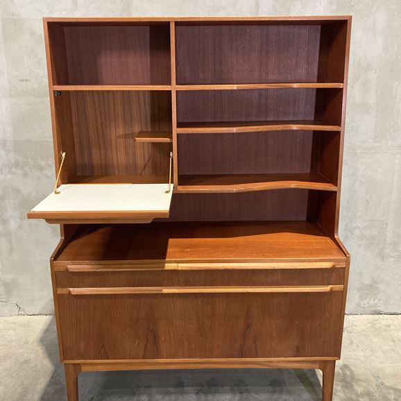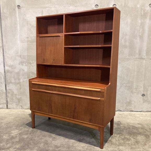 1960〜70年代に英国の名門家具メーカー A.H. McINTOSH(マッキントッシュ) によって製作されたチーク材のブックシェルフです。英国ミッドセンチュリーを代表する上質な造りと、洗練されたミニマルデザインが魅力の一台です。素材には深みのある上質なチーク材を使用。艶やかな木目と経年で育った色味が美しく、シンプルなフォルムの中に気品を感じさせます。棚板は実用的な高さでレイアウトされ、書籍はもちろんオブジェやレコード、食器などのディスプレイにも適したバランスの良い構成です。マッキントッシュ社らしい丁寧な無垢材の仕上げ、堅牢な構造はヴィンテージながら長く安心して使える品質を備えています。リビング、ワークスペースなどで取り入れやすく、空間全体を上品にまとめてくれる存在です。 英国ミッドセンチュリーらしい静かな佇まいとチーク材の温かみを堪能できる、マッキントッシュ社ならではの美しいブックシェルフです。
