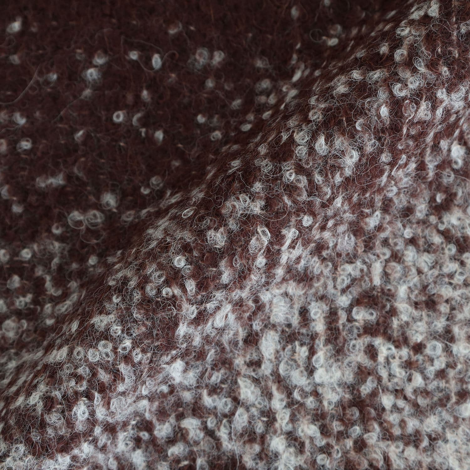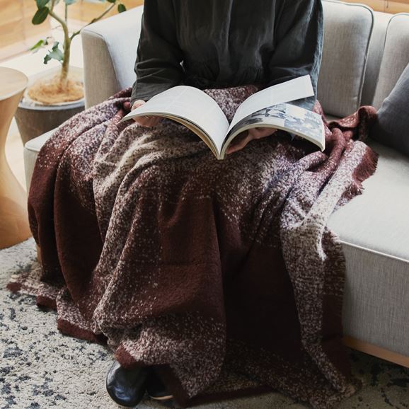 VOLCANIC THROWは表面に輪状の糸が出るよう加工された表情豊かなブークレーと呼ばれる糸で織られた、独特のフォルムと風合いを醸し出しているブランケットです。