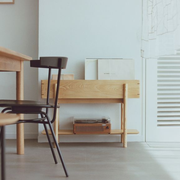 植物だけではなく、お気に入りのオブジェや雑誌を魅せるサイドファニチャーとして。 ダイニングではレシピ本やよく使うテーブルウェアをまとめてすっきりと清潔感のある空間に。