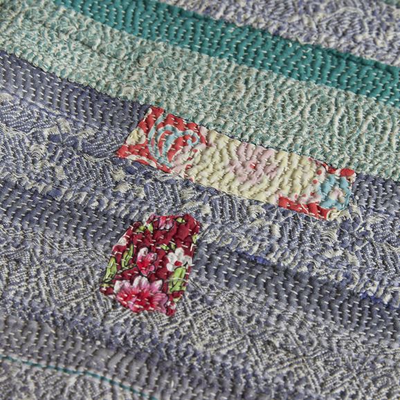 ラリー キルトは、インド・パキスタンなどの中東アジアで、永い間受け継がれてきた伝統的な布です。古くなったサリーやデュパタ、腰布・古いハギレ等を貼り合わせてパッチワークし、丁寧に刺し子で合わせたもの。インダス河流域の遊牧民の家々では、嫁入り道具として母親から娘へ受け継がれています。気の遠くなるような作業を経て、わが子へ想いをこめて手渡します。一枚一枚に物語があって、何千年にも渡り母から娘へと伝えられる品。布の貼り合わせ方、刺し子の細やかさ、生地の厚みや柄など1つとして同じものはありません。丁寧にハンドメイドで作られているからこその味わいと魅力があります。