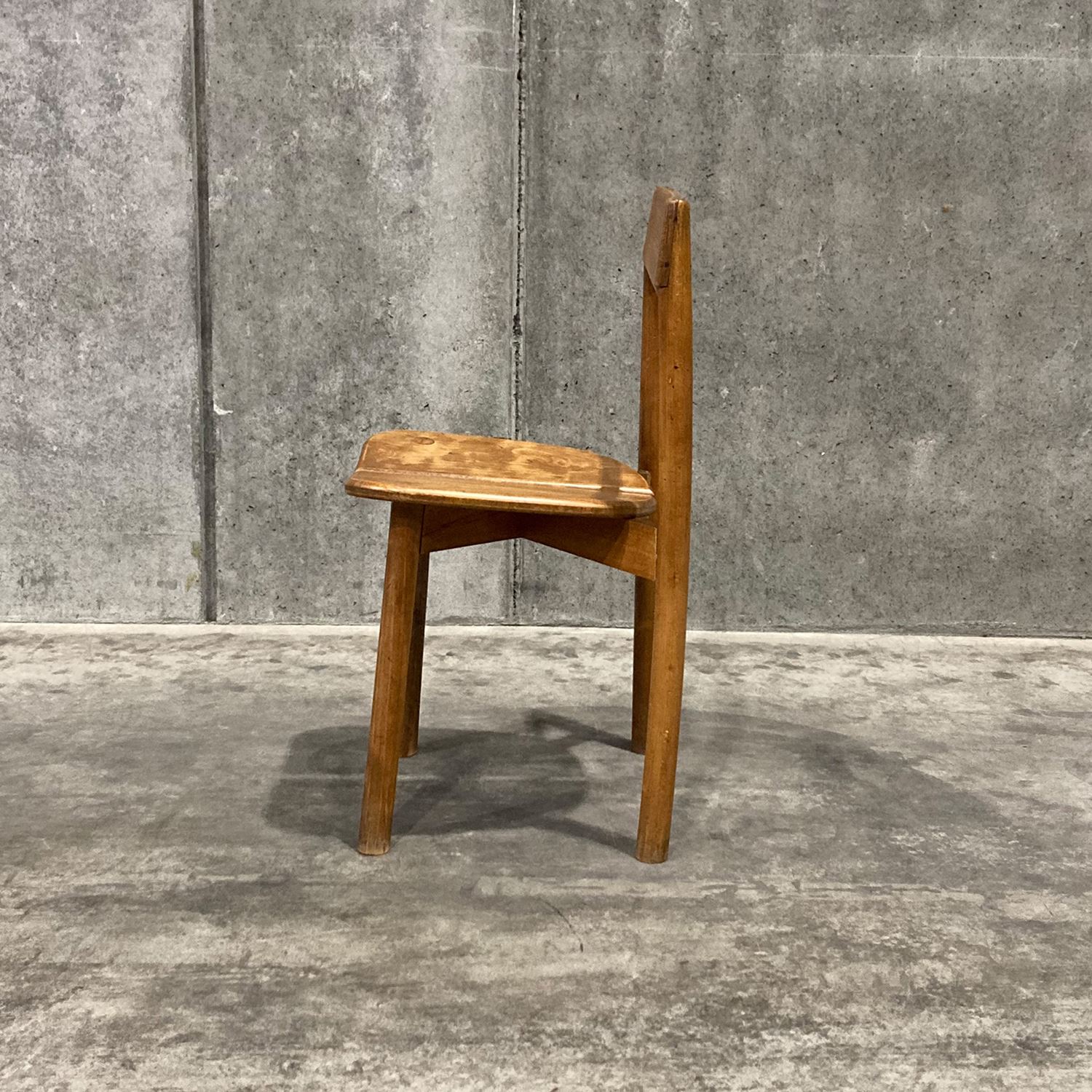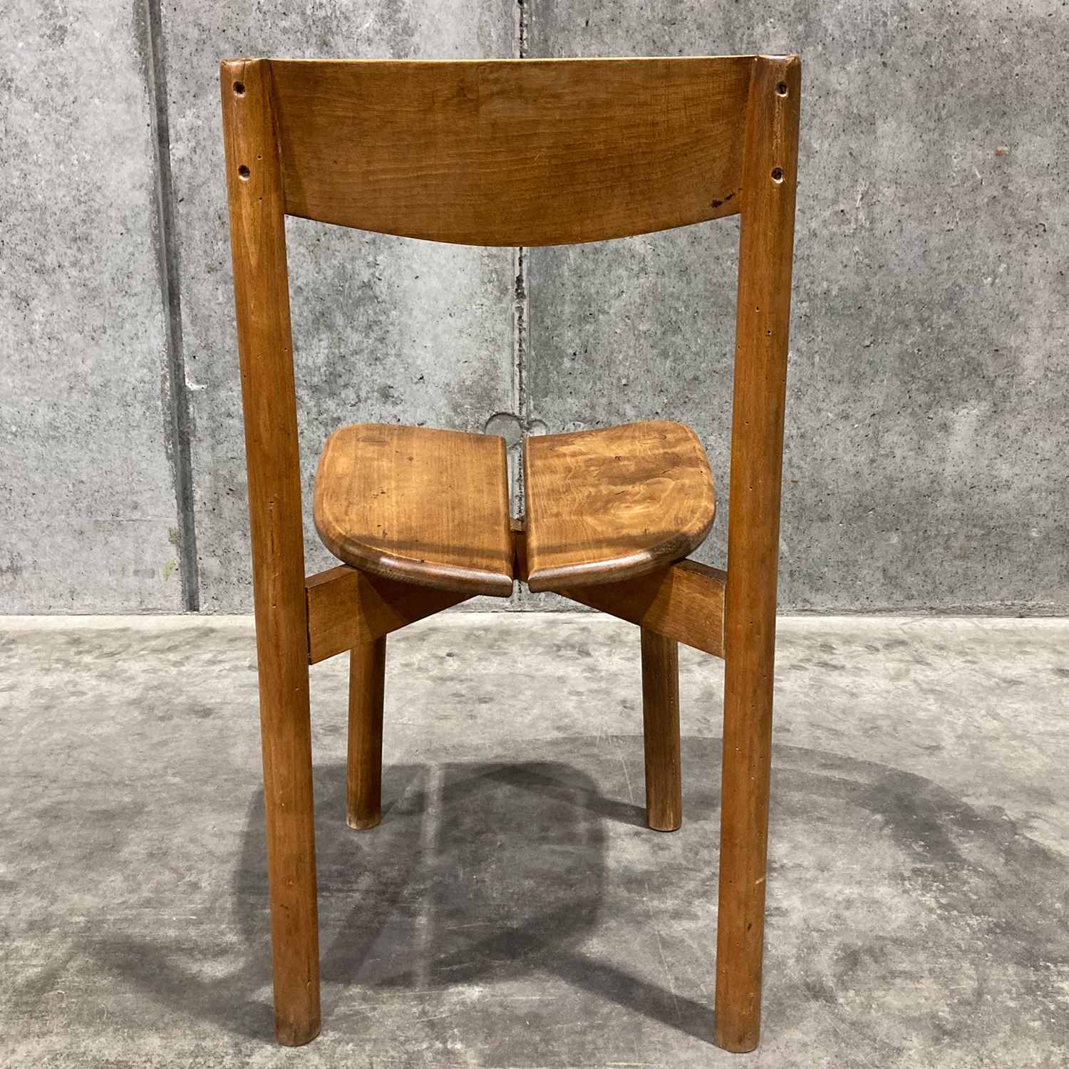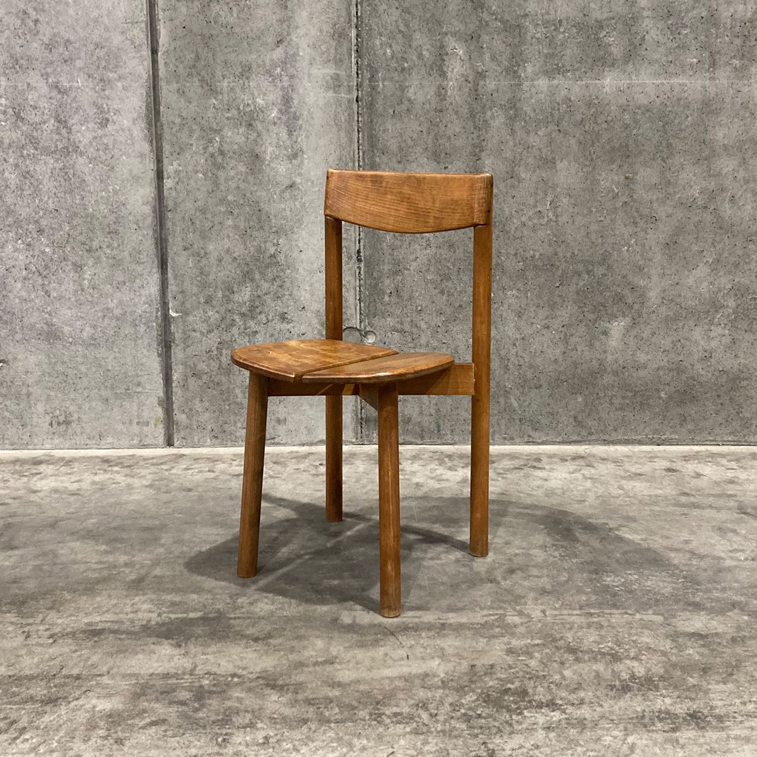 イデーのオリジナル家具と親和性があり、現代の日本のライフスタイルに馴染むヴィンテージアイテムを、バイヤーが1点1点セレクトしました。<br><br> フランスで製作されたビーチ材のチェアです。牧歌的なイメージのデザインで、素朴なたたずまいが魅力で日常遣いができるチェアです。ビーチ材特有の緻密でしっとりとした滑らかな木肌と、強度を活かした魅力的な一脚です。座面のデザインが特徴的で、座りやすさを考慮し二枚の板座が中央に向けて斜めにデザインされています。ダイニングチェアとしておすすめです。 <h5 class="mt40">ヴィンテージ家具の全ラインナップはこちら</h5><a href="/shop/c/cV0-all/"><img src="/images/item_page_banner/itemPage_bnr_onl_vintage.jpg" alt="【特集】ヴィンテージ家具" class="itempagebnr"></a>