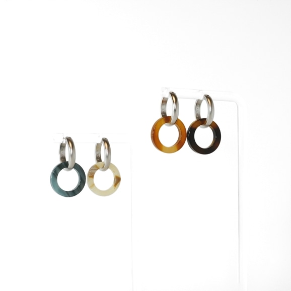 doughnut hoop pierce ペア M シルバー マット×クリーム