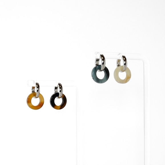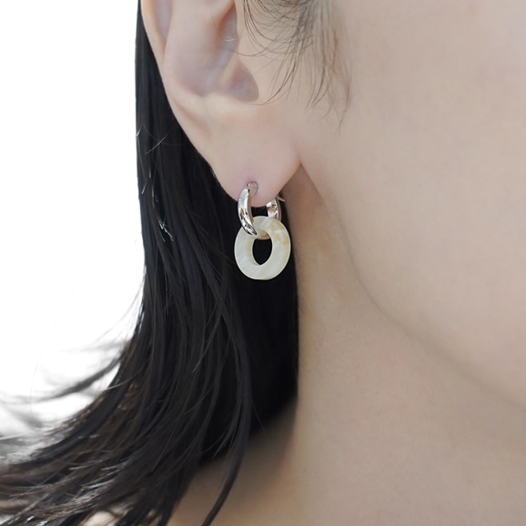 doughnut hoop pierce ペア S シルバー 鏡面×クリーム