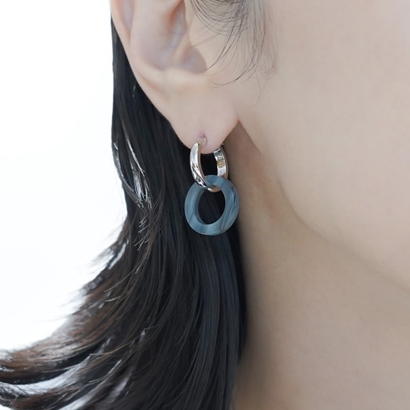 doughnut hoop pierce ペア M シルバー 鏡面×ブルー
