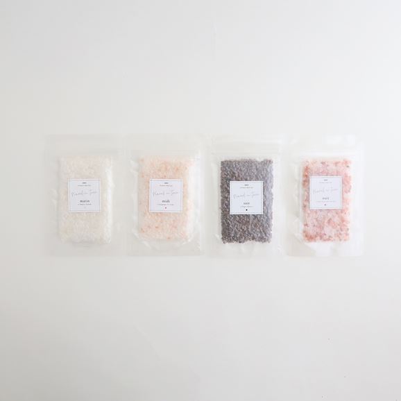 - バスソルト60g、ガーゼ×1 ※ガーゼはパッケージ内に同封されています。